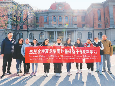 “为促进企业员工的更好融合,集团定期从印尼选派大学生到中国接受学习培训,感谢天津外国语大学为我们培养了大量精通汉语、了解中国文化的员工,为促进印度尼西亚经济社会发展注入了新鲜血液。”聚龙集团“常青树”外籍员工学习班负责人姜菲说。