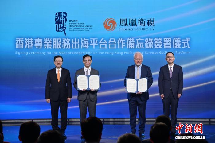 活动中,香港特区政府律政司副司长张国钧与凤凰卫视执行副总裁杨家强交换“香港专业服务出海平台”合作备忘录。张国钧表示,希望发挥彼此优势,共同推动香港专业服务与内地企业出海需求精准对接,让世界看到更多中国企业成功出海的故事。
