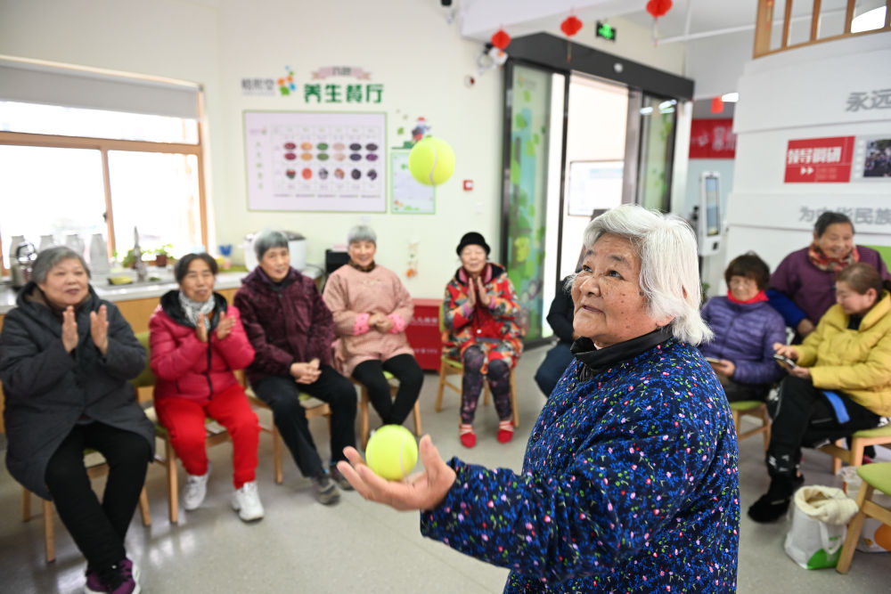 在江苏省常州市天宁区茶山街道富强新村社区党群服务中心,老人即兴表演才艺(2024年1月9日摄)。常州市积极构建15分钟居家养老服务圈,建有镇(街道)综合性养老服务中心62家,实现街镇全覆盖。新华社记者 季春鹏 摄