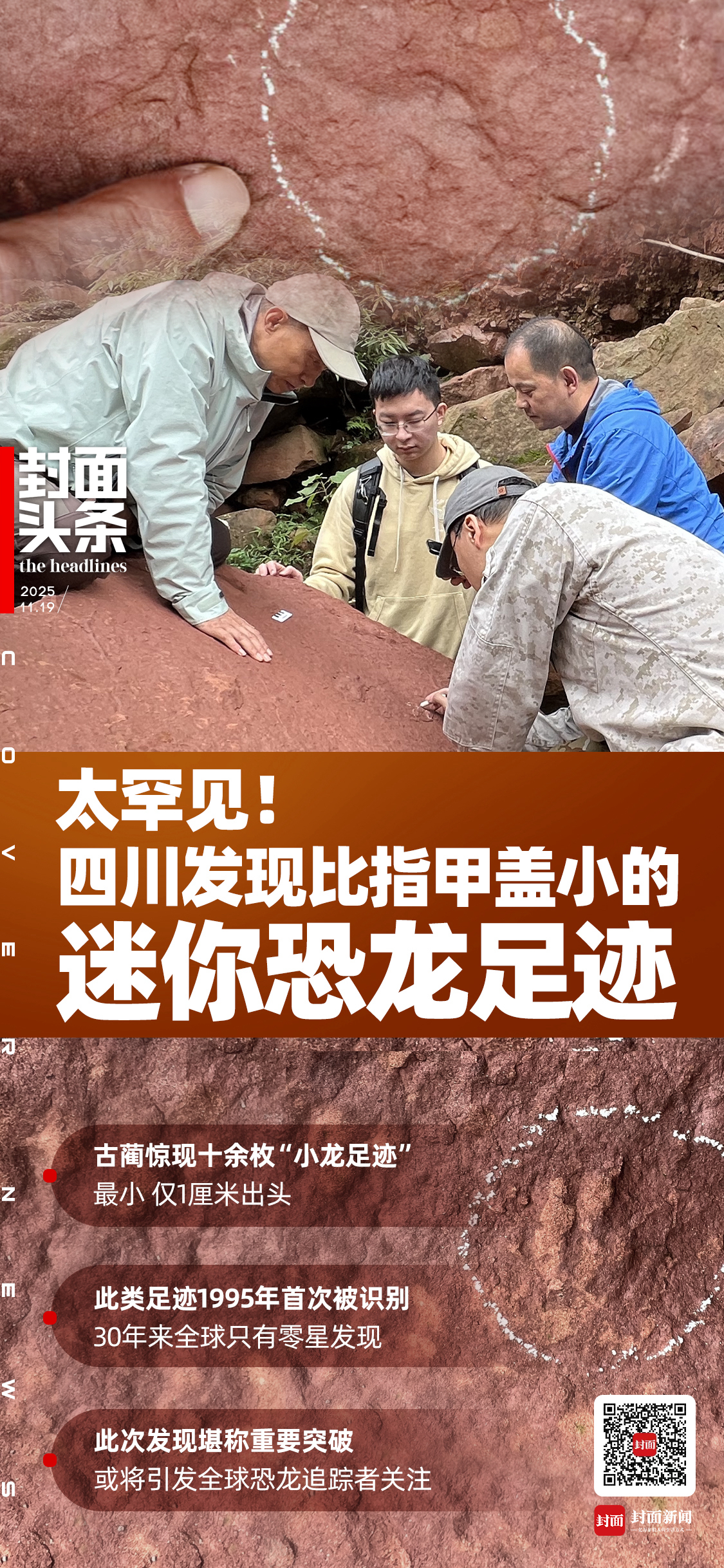 “这是全球恐龙追踪者梦寐以求的标本之一。”邢立达介绍道,“其中最小的足迹仅1厘米出头,平均约2厘米,甚至小于鸟类脚印。”这与恐龙高大威猛的固有形象形成巨大反差,这些“迷你”足迹显得格外呆萌可爱。