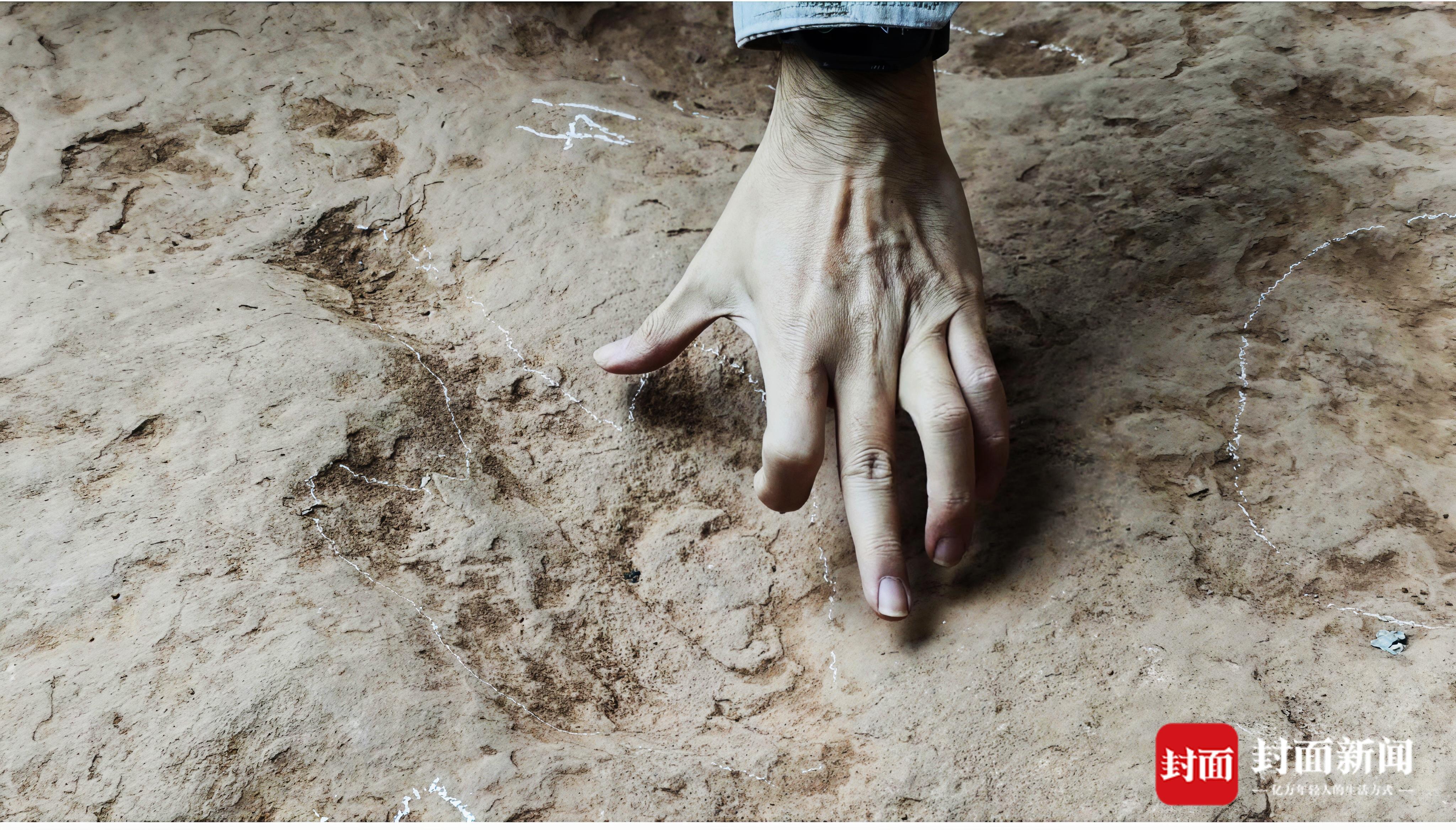 “翼龙因体重极轻,足迹极难保存,但这里的前后足迹虽形态不甚清晰,尺寸却超越此前周边的已知记录,说明当时沉积物细腻,才能留下如此完好的印记。”邢立达表示。