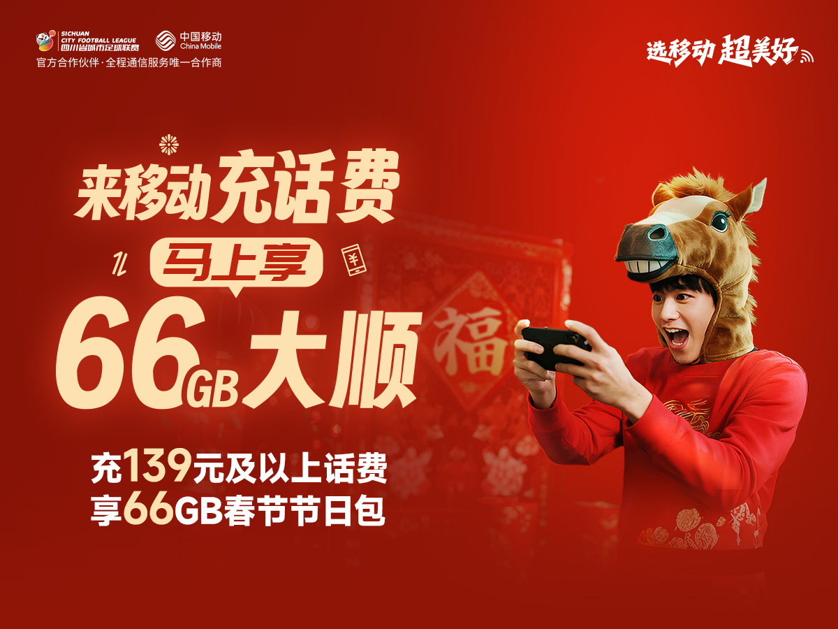 今年,四川移动用户有福了!点击[https://dx.10086.cn/A/Y4K4Lw],登录中国移动APP单笔充值实付金额139元(及以上),即可免费领66GB春节全国通用流量。春节9天无需再为流量发愁。