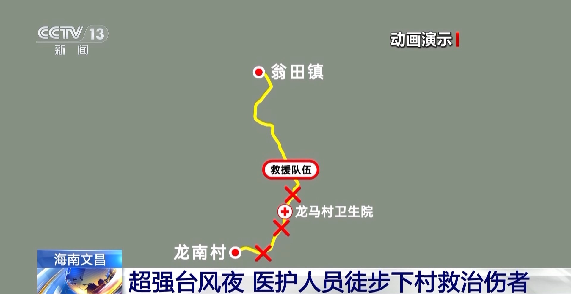 龙南村距离翁田镇镇委15公里,当时道路已经全部中断,在紧急情况下,翁田镇镇委指挥部做出部署:先由文昌市医院通过电话远程指导伤者家属进行止血包扎。等12级风圈过后,一方面联合消防等部门进行道路清障,尽快打通前往龙南村的道路;另一方面请距离龙南村最近的龙马卫生院进行支援。