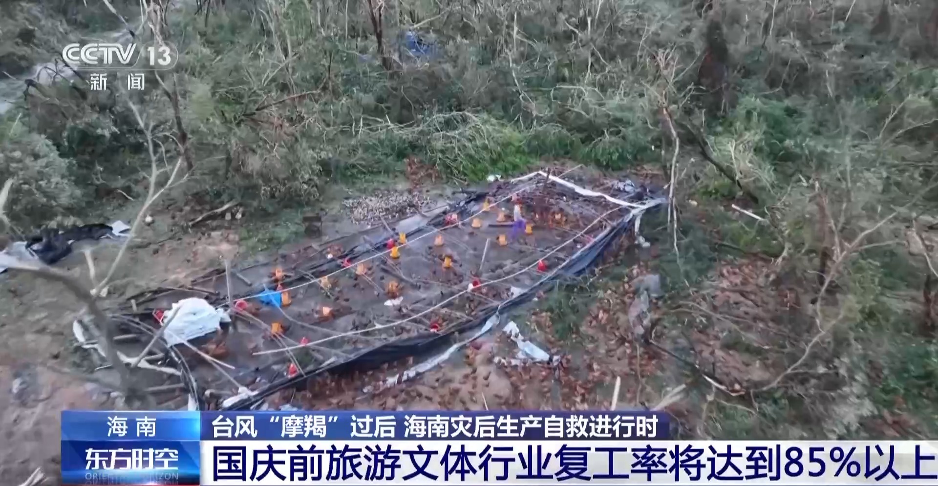 总台记者 范珊珊:此次台风给海口、文昌、澄迈、临高的影响比较大,像是海南环岛旅游公路文昌段的风车海岸,部分电力风车被吹断;位于海口的海南热带野生动植物园,园内的动物均无伤亡,但是景区的植物被毁,需要一定的时间才能完全恢复。在各旅游企业、景区景点,现在正在进行灾后重建工作。目前,已有超过100家酒店为有需要的市民群众提供包括免费洗澡、充电、餐饮住宿等帮助。中秋节前总体复工率将达到75%以上,国庆前复工率将达到85%以上。建议近期去海南旅游的游客,可以选择海南的三亚、万宁、陵水等台风影响小的地区去游玩。