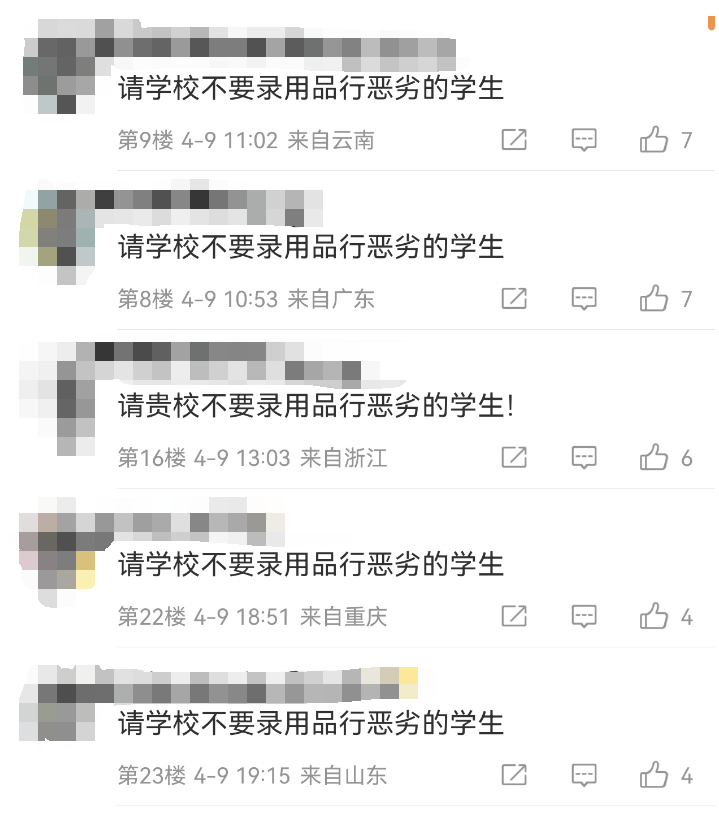 记者梳理网络信息发现,4月8日晚,有媒体报道称,徐某某并未进入兰州大学调剂拟录取名单。4月9日,有网友在社交平台称“虐猫考生调剂到西南科技大学”,为此,众多网友在西南科技大学官方微博内留言,请学校不要录取品行恶劣的学生,并提醒该校“珍惜名声”“珍惜羽毛”。