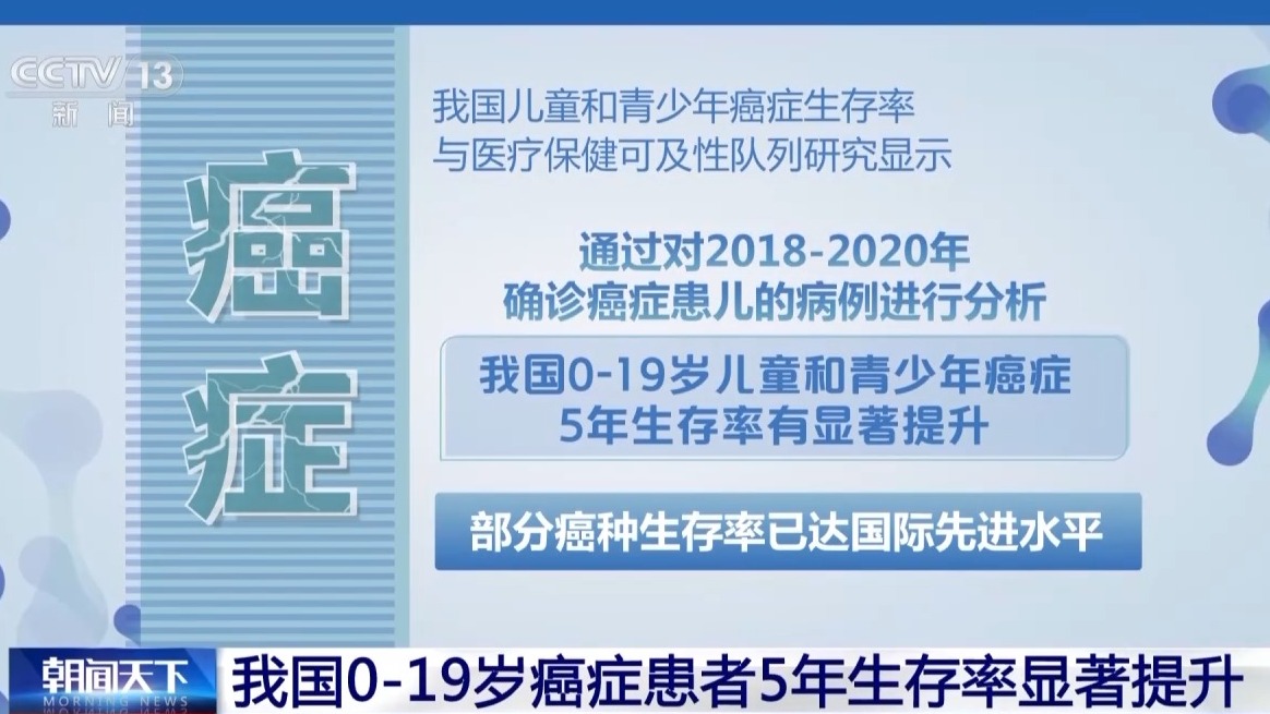 今天(12月24日),在国家卫生健康委指导下,由国家儿童医学中心、国家儿童肿瘤监测中心、首都医科大学附属北京儿童医院共同完成的首项针对我国0至19岁儿童和青少年癌症5年生存率和医疗保健可及性的队列研究发布。