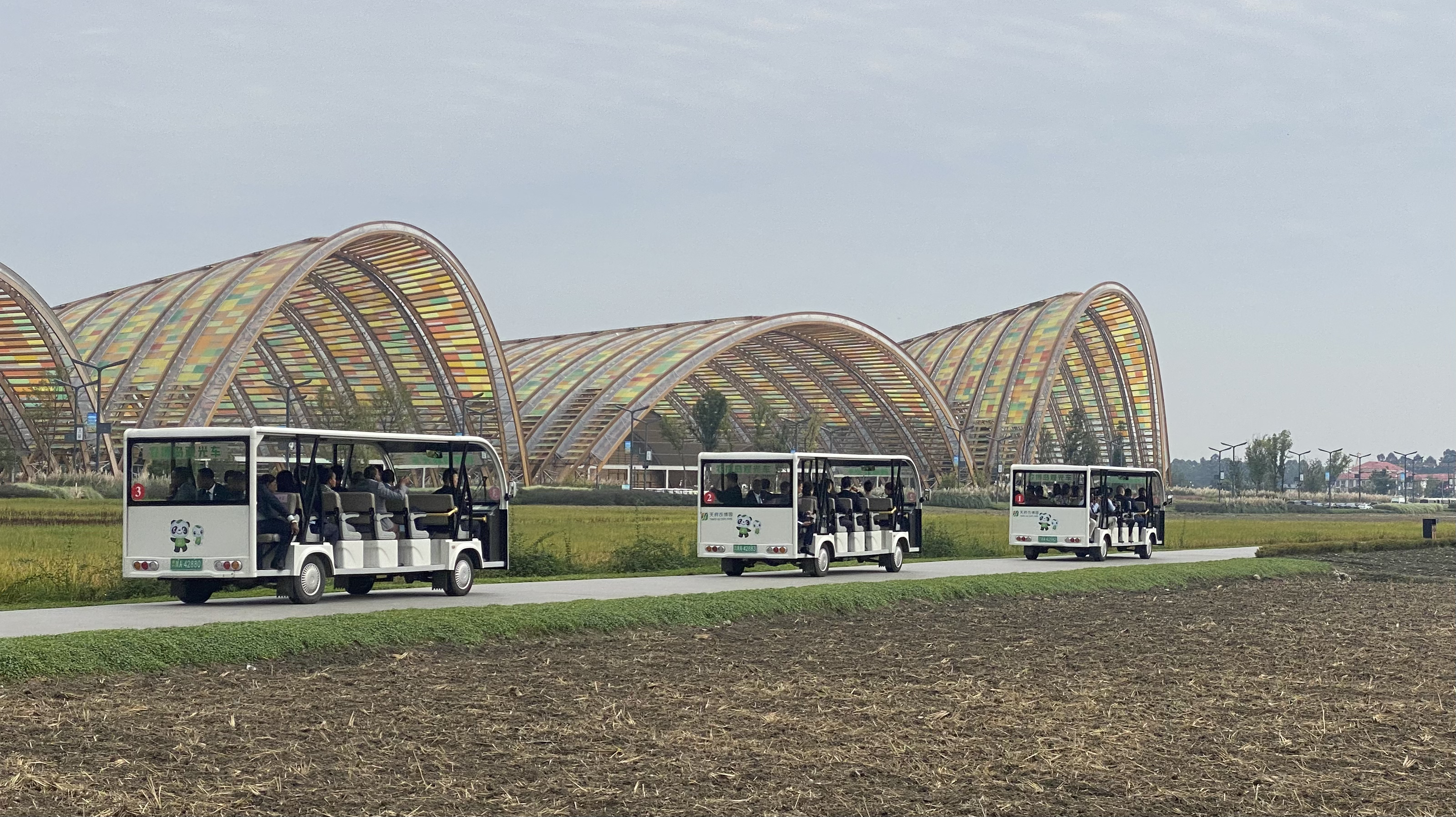 下午,在位于新津的天府农博园,这里的大片水稻已经收割,油菜刚刚播撒上。他们在田野之中感受着乡村振兴的实践。