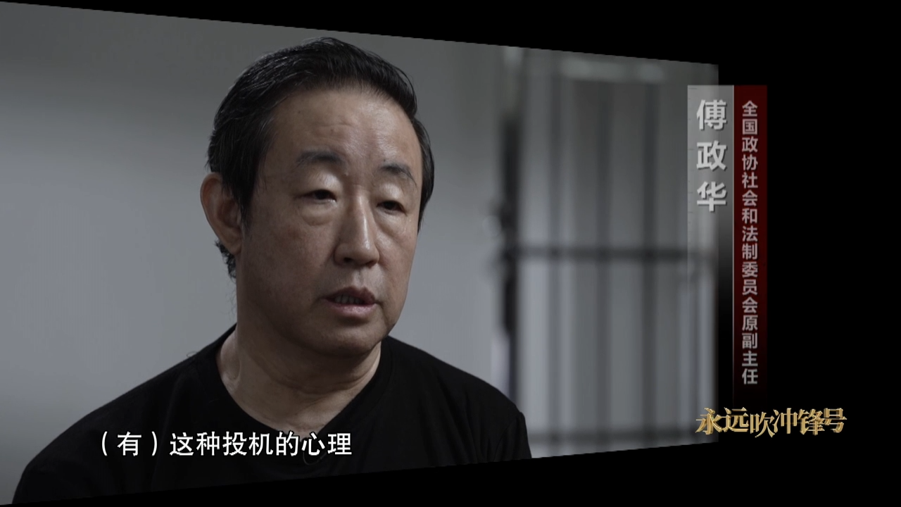 中央纪委国家监委第十一监督检查室副主任 李永红:傅政华1970年当兵以后,第二年就入党。入党的时候他的老班长当时提了一条意见,说他年龄太小,建议再缓一缓再考虑他。这件事儿傅政华记了整整一辈子,直到接受审查的时候,还念念不忘这件事儿,他把入党、做官看成了人生的入场券、垫脚石、敲门砖。