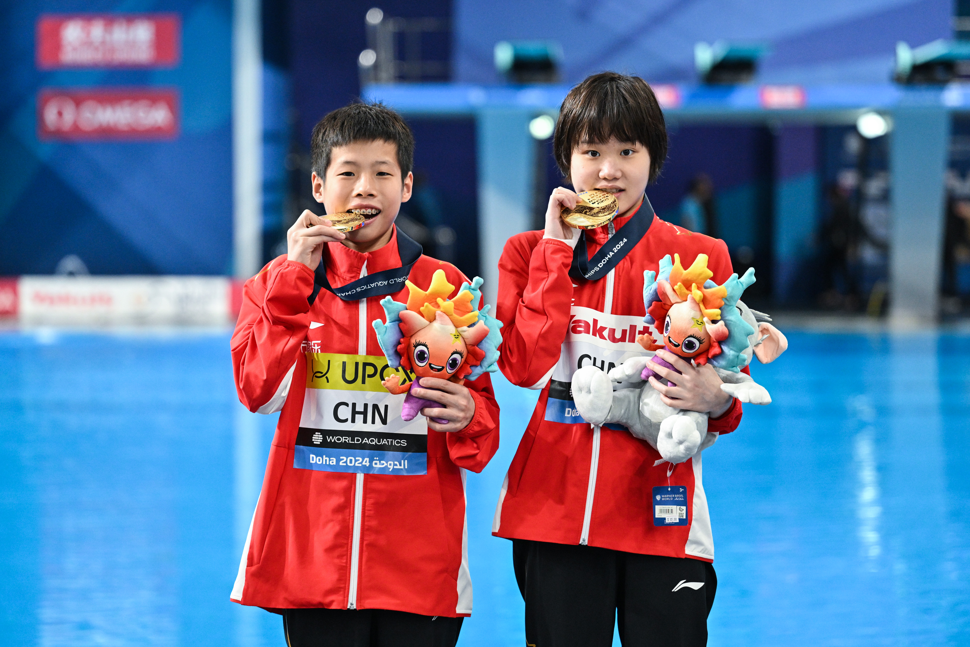在混双10米台决赛中,曾夺得福冈世锦赛该项目金牌的张家齐,此次与未满14岁的小将黄建杰搭档,以353.82分顺利蝉联冠军,为中国队夺得本届世锦赛首金。朝鲜组合任永明/赵珍美收获亚军,墨西哥组合伯林·雷耶斯/埃斯图迪略·托雷斯摘得铜牌。