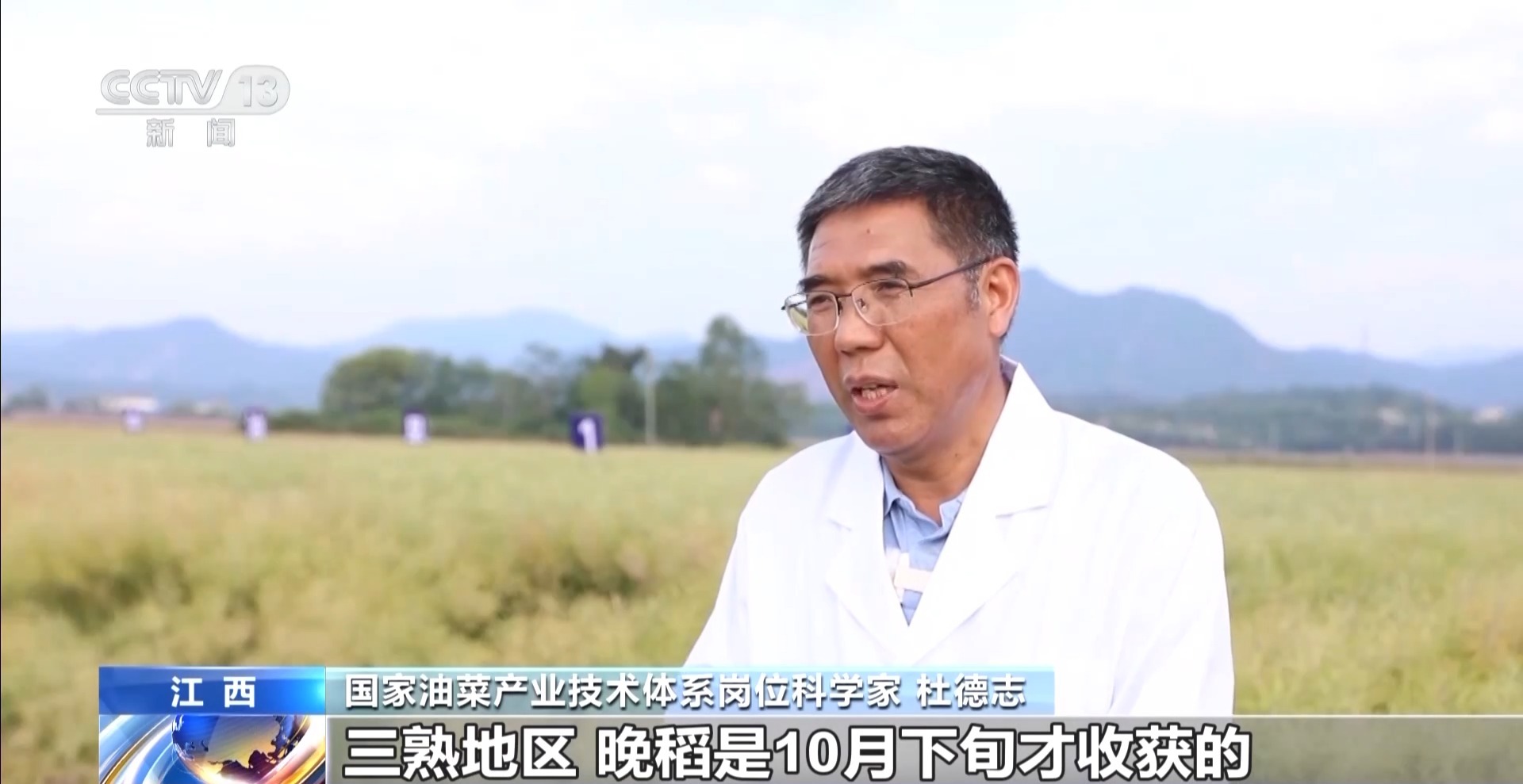 国家油菜产业技术体系岗位科学家 杜德志:三熟地区,晚稻是10月下旬才收获的,早稻是4月20日左右就要插秧了,只有180天,所以我们短生育期品种,必须满足这个时间的要求。