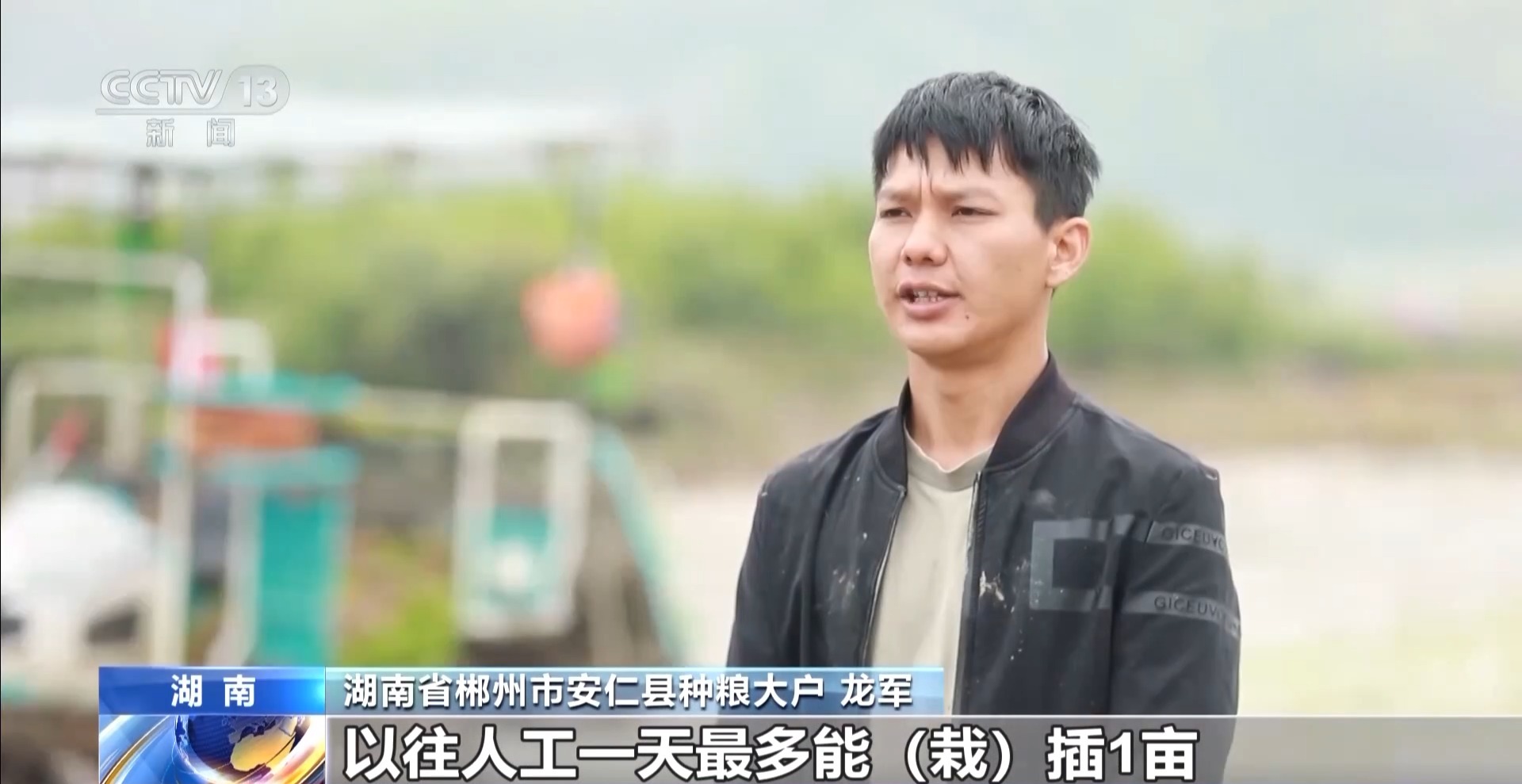 湖南省郴州市安仁县种粮大户 龙军:油菜收割后种下早稻,以往人工一天最多能栽插1亩,现在有了机械一天可以插30亩,效率翻了近30倍,油菜秸秆还田还能替代化肥,预计早稻亩产能提高2%。