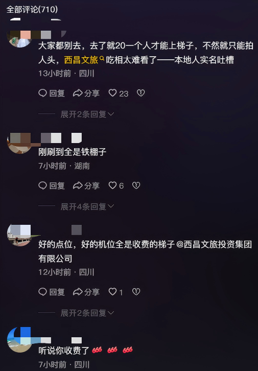 “上梯子才能碰到花,大家就想在梯子上面拍。”有网友认为,当地应该搭建安全、免费的梯子,而不应该承包出去收费,这样“吃相难看”,“就觉得这样的行为就很没品,明明是很好看的风景,为什么要这样子拿来盈利呢?”