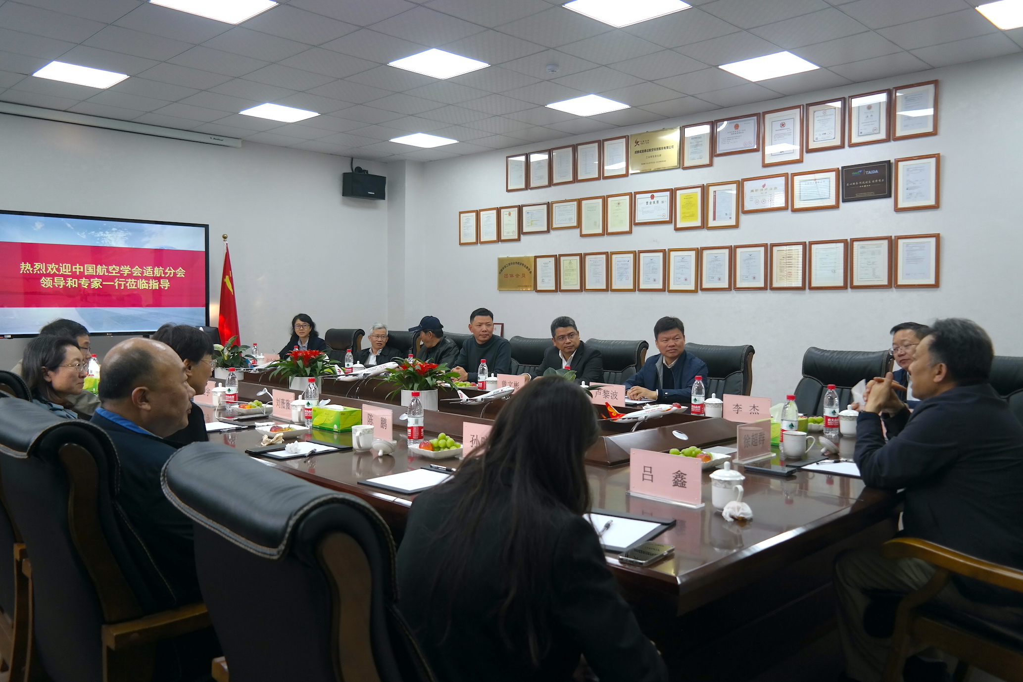 中国航空学会适航分会一行专家及领导,考察参观了成发泰达的产品、设备、管理体系,中国航空学会适航分会主任委员徐超群对成发泰达公司的技术实力表示了高度认可,并建议成发泰达进一步加强自主研发能力的投入。同时,各方就国内航空产业发展前景,以及进一步的企业服务模式进行了深入交流。