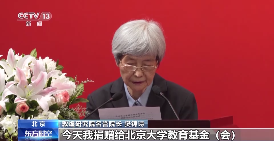 捐赠仪式上,樊锦诗为母校送上祝福,并捐赠1000万元,设立樊锦诗教育基金,用于敦煌学相关的学术研究、人才培养、国际交流等。