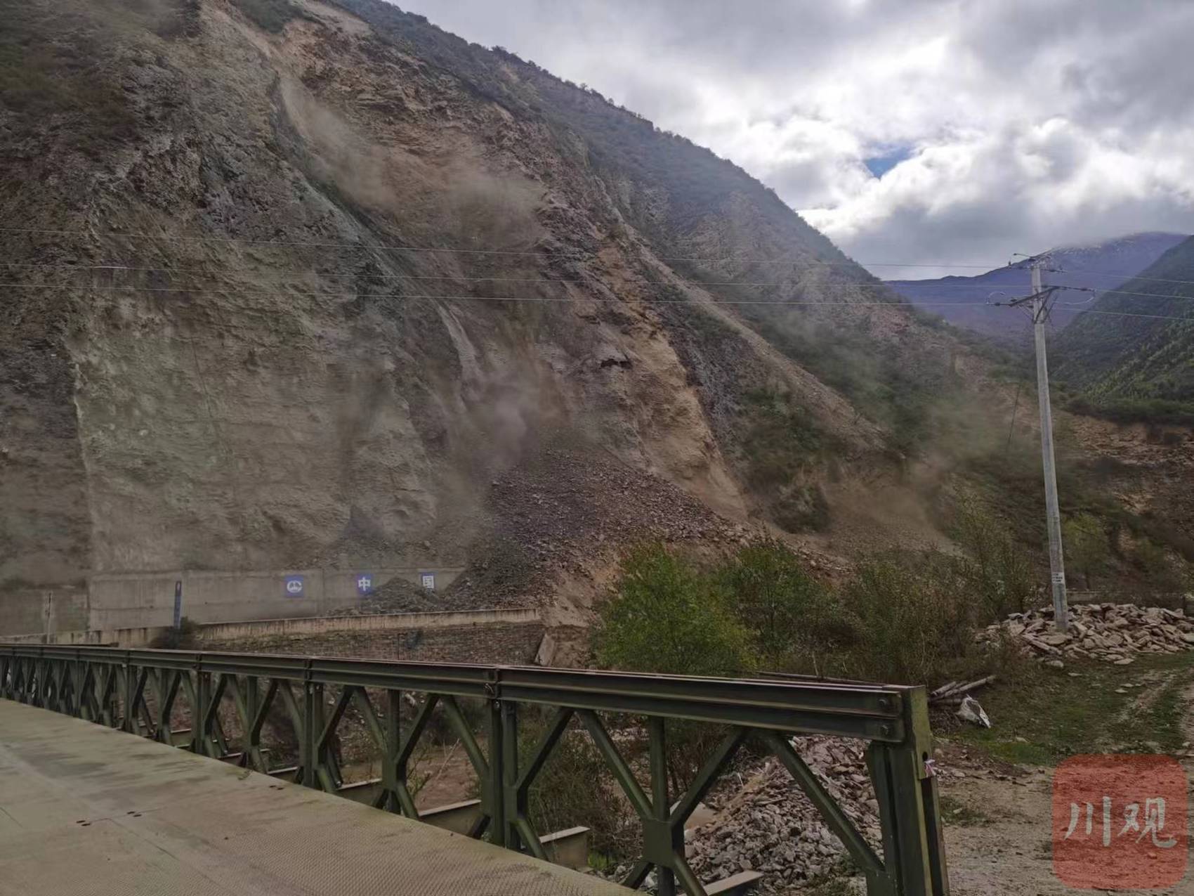 松潘县境内青云镇鸳鸯桥处发生高位垮塌。