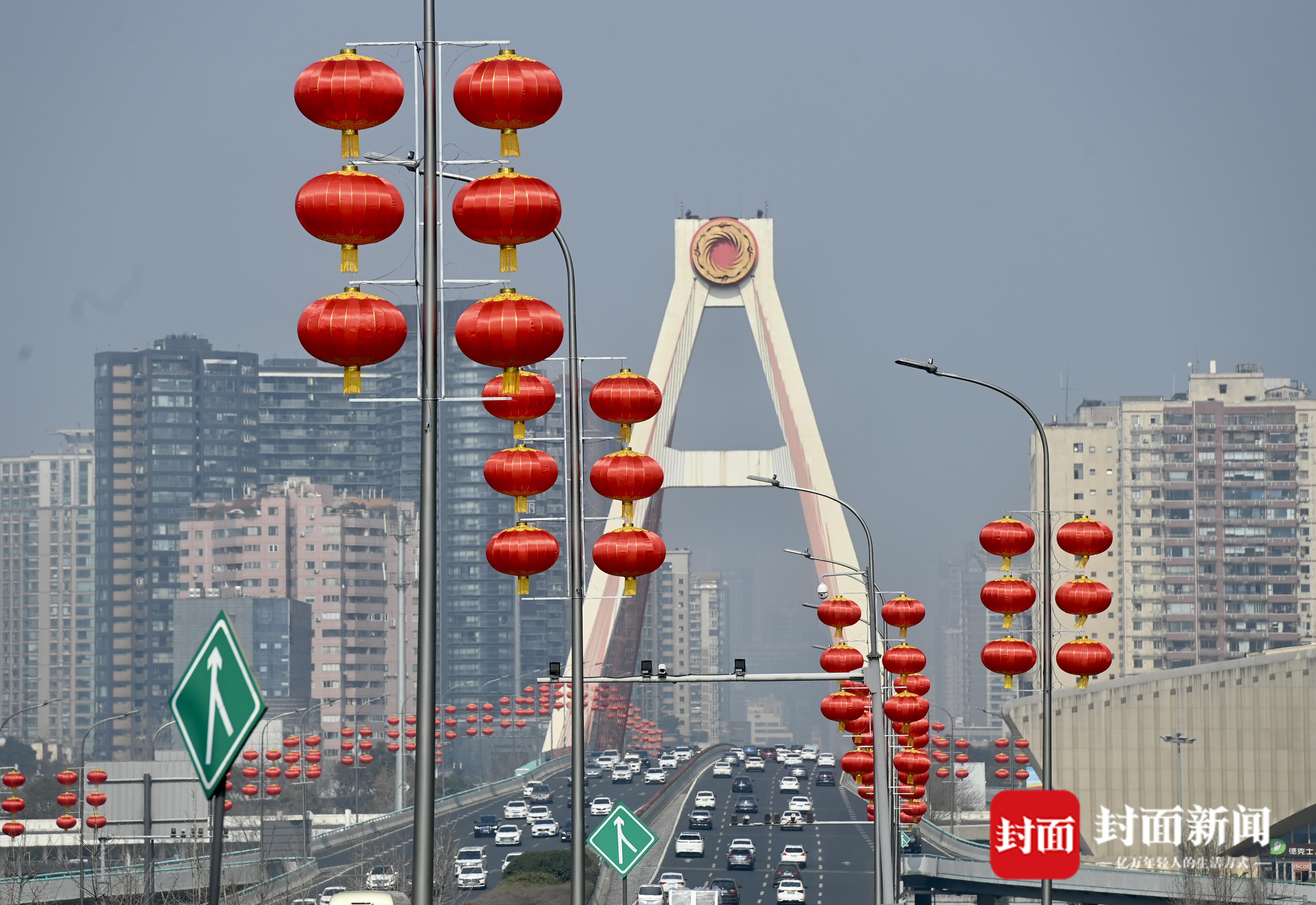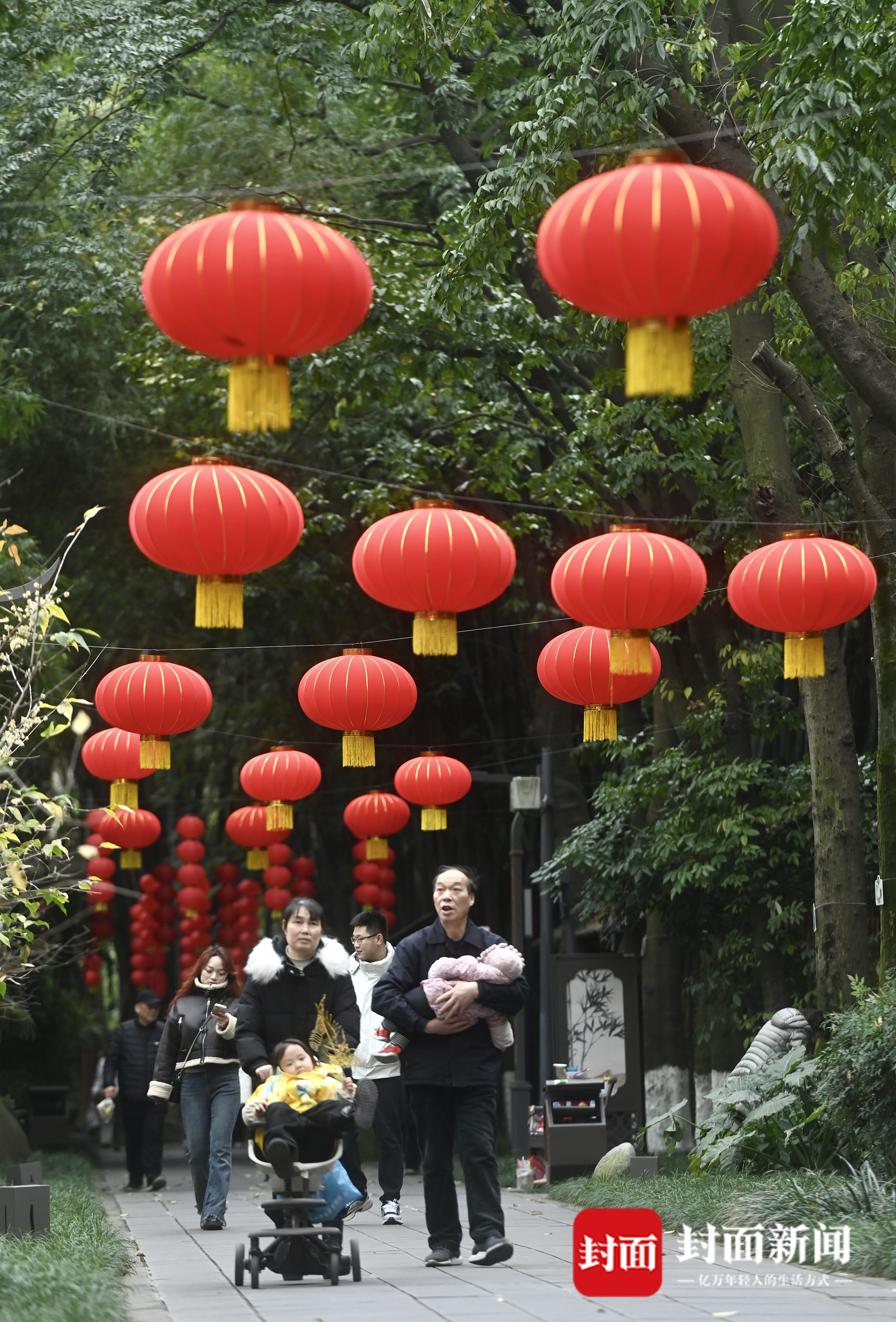 新春佳节越来越近,成都街头新春的氛围拉满。