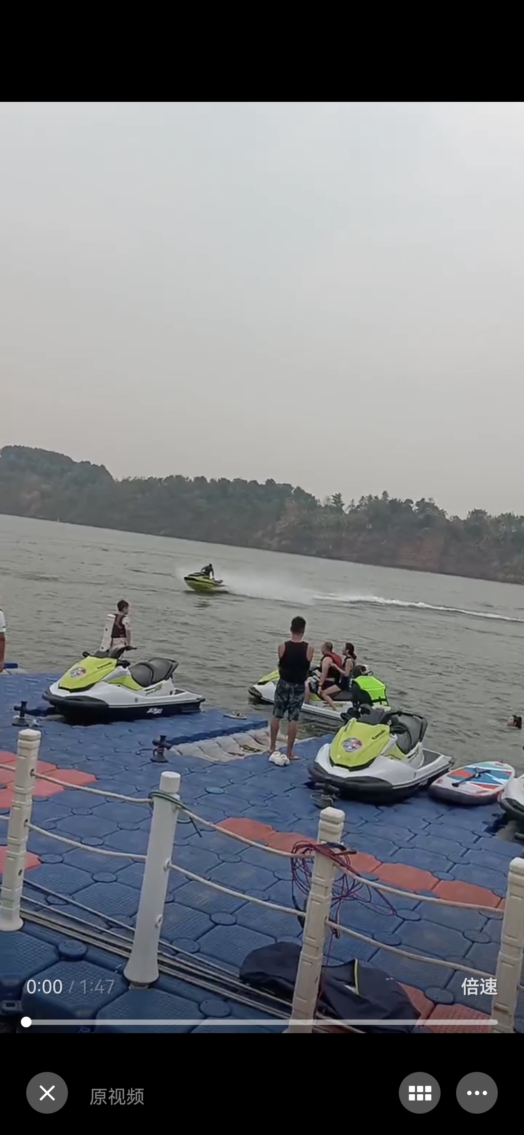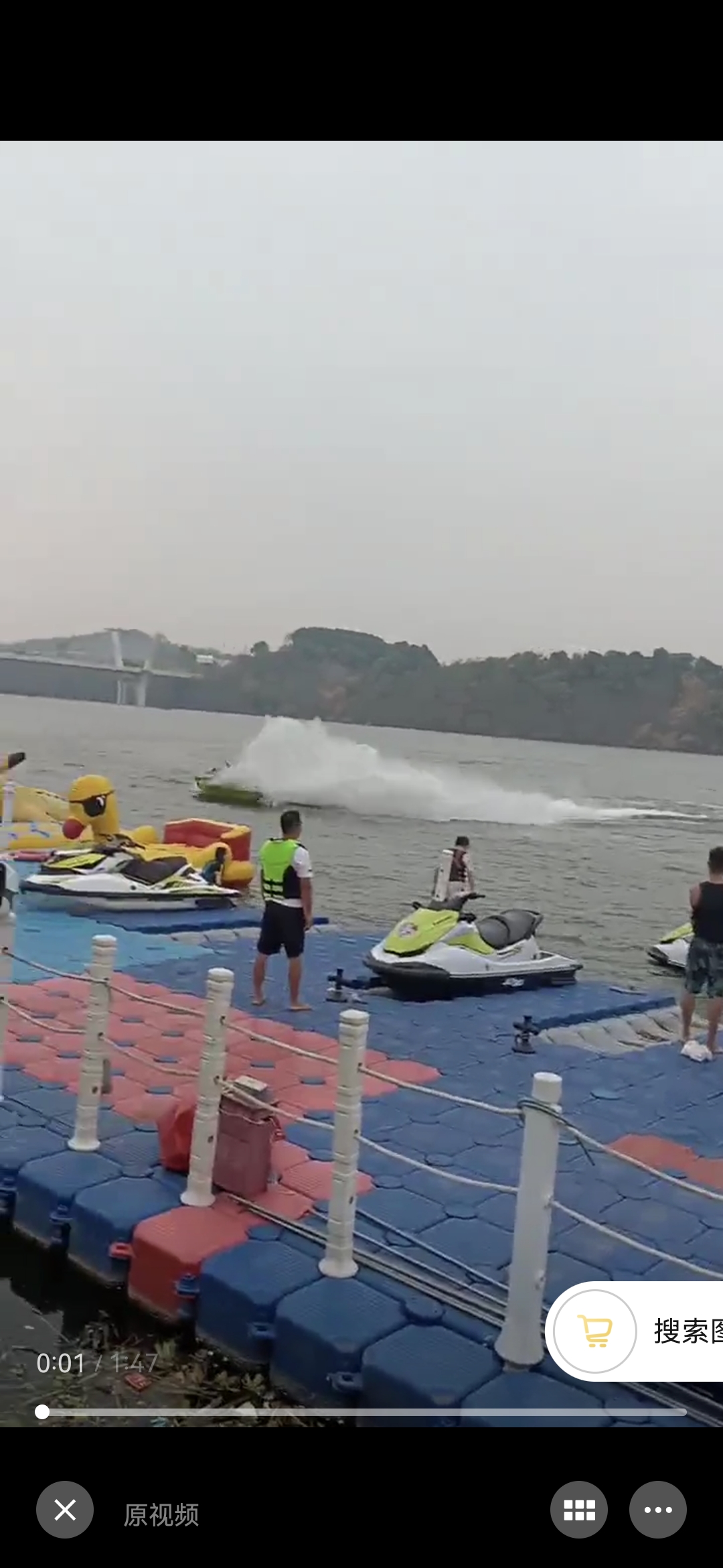 网传的现场视频显示,一名身穿短袖短裤的男子驾驶摩托艇,玩漂移时发生了侧翻并溅起巨大水花,待水花散去,该男子却不见踪影。随后,岸边陆续有人下水搜救。
