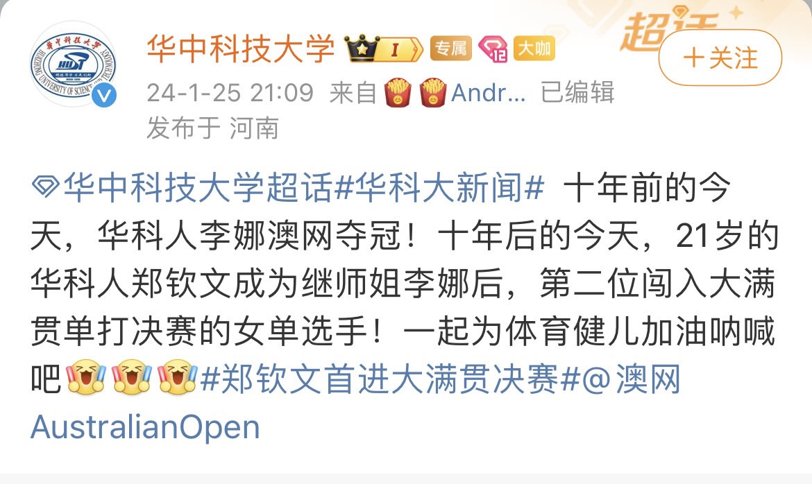 图片来源 华中科技大学官方微博截图