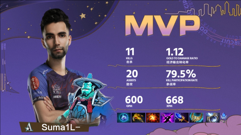 AR战队本赛季首战对手是Aster的二队Aries,在线上赛中他们2:0轻松取胜,第二场比赛他们更是爆冷战胜了上赛季DPC联赛冠军XG,取得两连胜的开门红。与Aster的焦点之战中,首局比赛Maybe的中单石鳞剑士被Sumail的中单冰龙克制,AR战队的阵容劣势导致他们并没有翻盘机会便被对手轻松碾压;第二局比赛前期依然由Aster战队占据优势,然而AR战队的一号位选手楼桢(ID:lou)操刀的恐怖利刃在中期一波关键肉山团开启BKB强行抢盾成功,帮助AR扭转劣势,后期决胜团中Sumail的风暴之灵一波入场拉住AR战队四人,上演电子狂欢,为Aster战队奠定胜局。