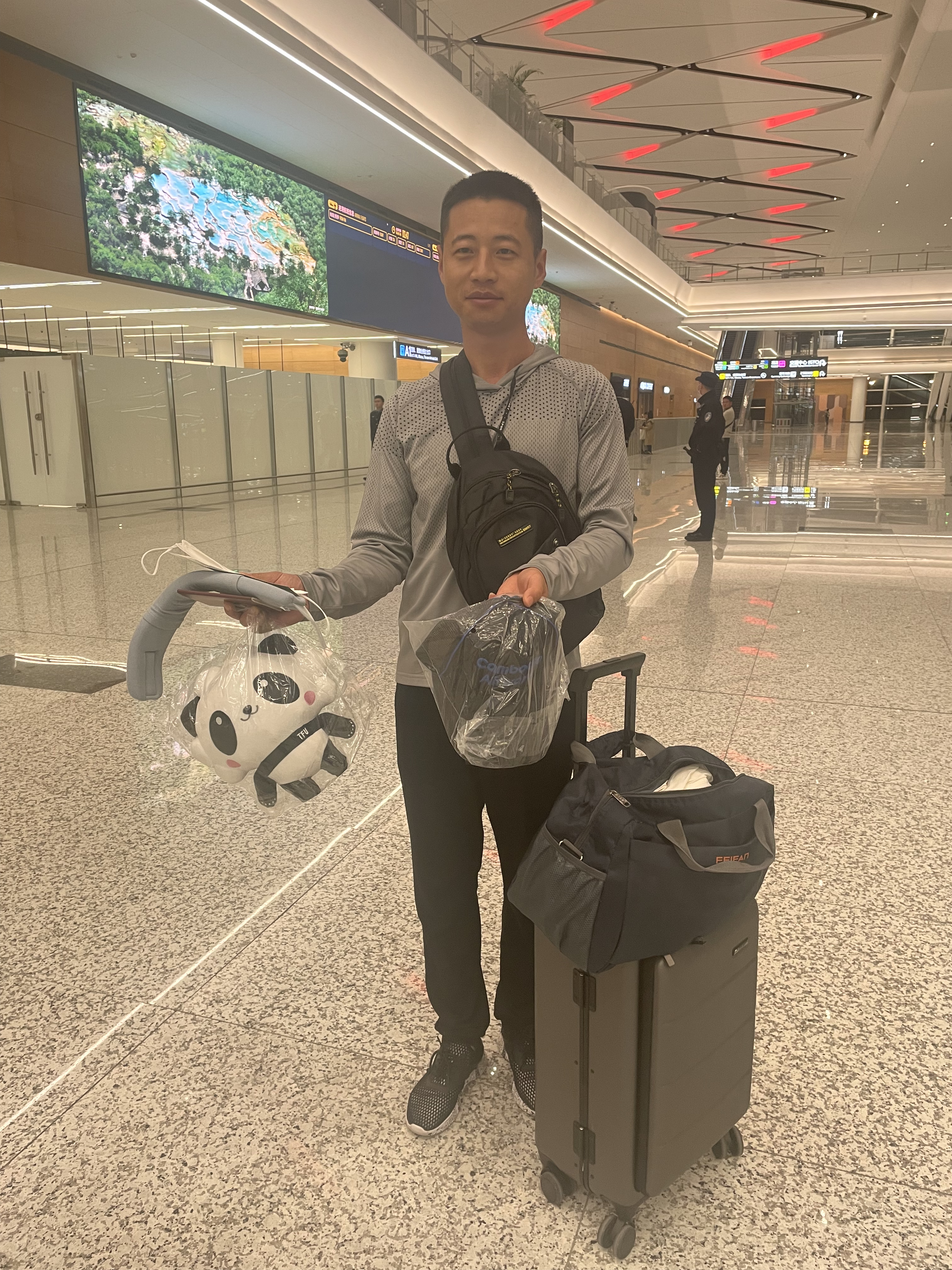 吴先生也是首批入境旅客。“我在金边机场换飞机牌的时候,工作人员就告诉我是首批飞天府机场的入境旅客。刚下飞机,又收到了机场送的小礼物,很惊喜!”