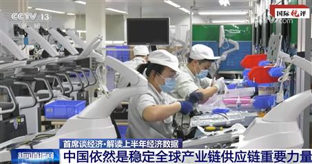 当前,“中国为全球产业链供应链的运行提供重要支撑”,已经成为很多国际人士的共识。今年上半年,中国货物贸易进出口总值20.1万亿元人民币,历史同期首次突破20万亿元,同比增长2.1%。这在国际需求大幅放缓的背景下相当不易。