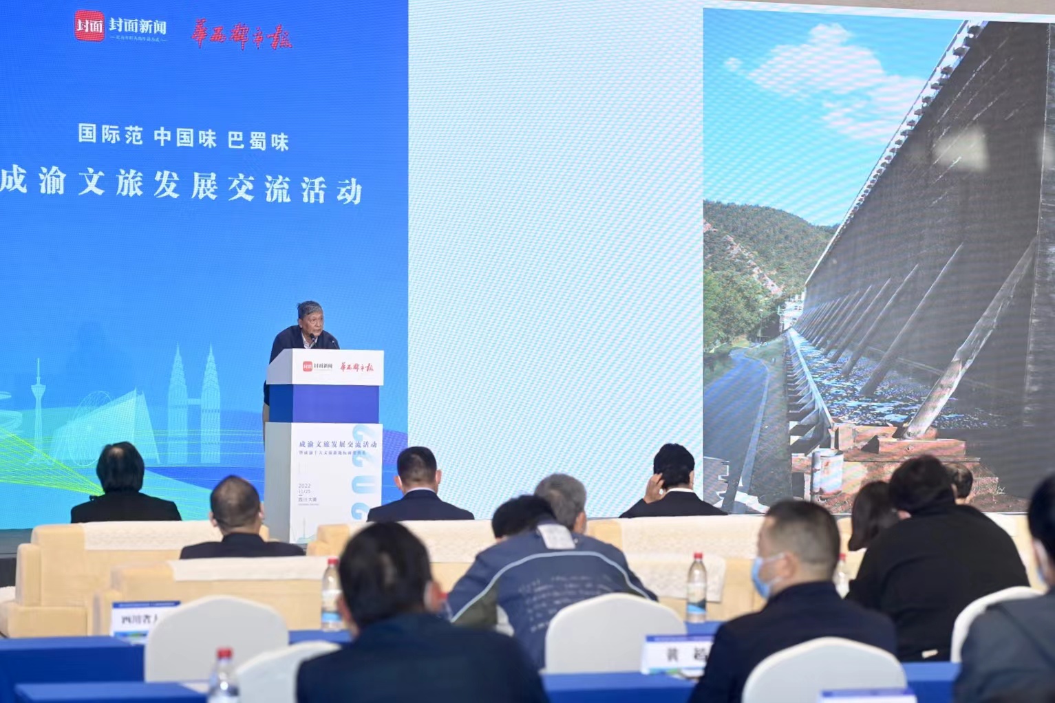 11月25日,成渝文旅发展交流活动暨“成渝十大文旅新地标”颁奖典礼在四川遂宁大英举行。四川大学讲席教授、北京大学教授、美国艺术与科学院外籍院士李水城进行了精彩的主题演讲。