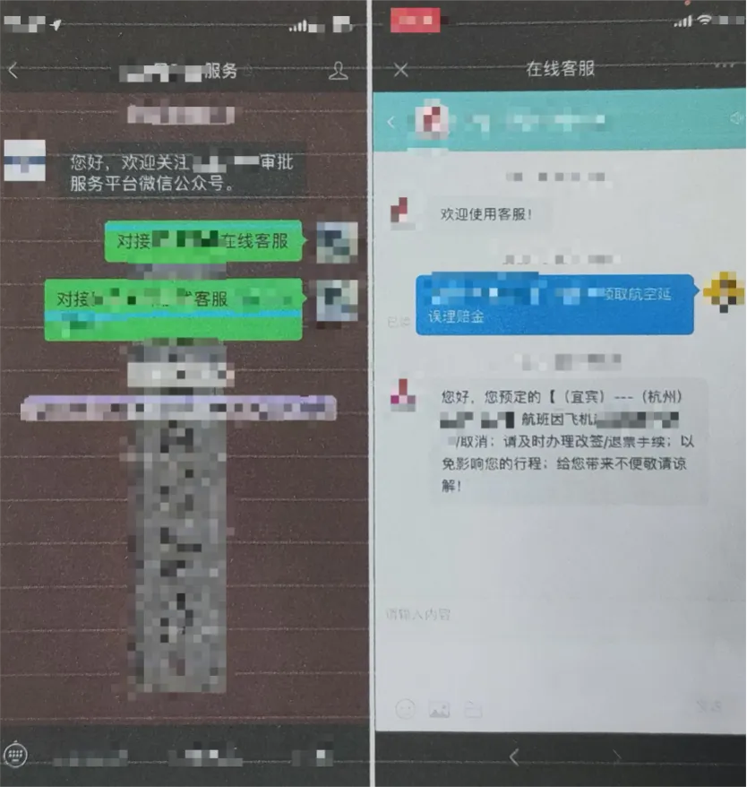 张女士想着机票钱和延误保险费用退回来后,再买动车票前往杭州也可以,于是按照客服的引导申请延误险。对方询问张女士:“你是否成功开通过淘宝个人账户没有绑定支付宝平台,如果没有绑定的话是会领取失败的。”张女士回答“是的”。于是客服说要成功办理退票手续和领取延误险,需要在微信上关注公众号对接专业理赔客服才可以办理。
