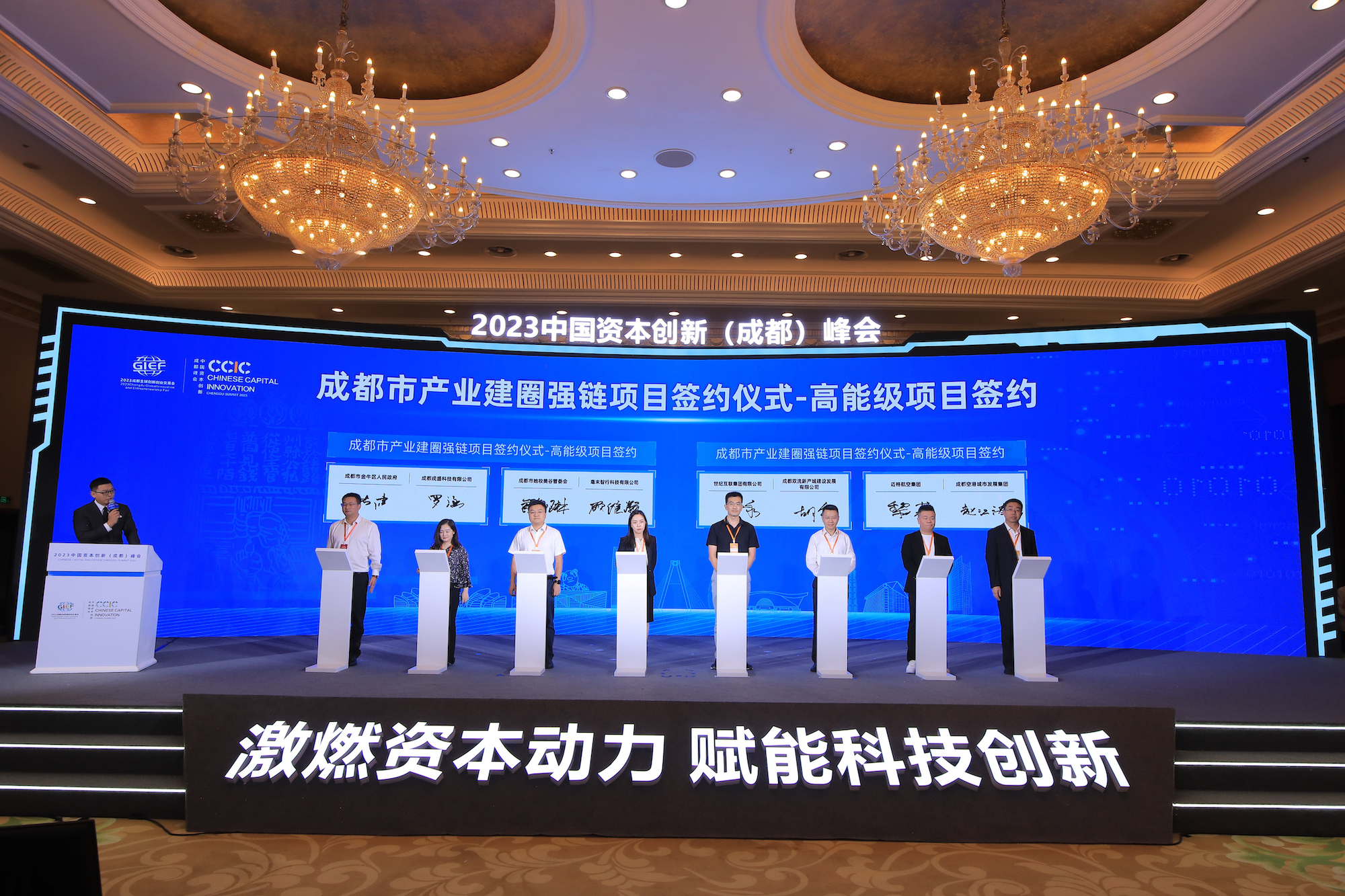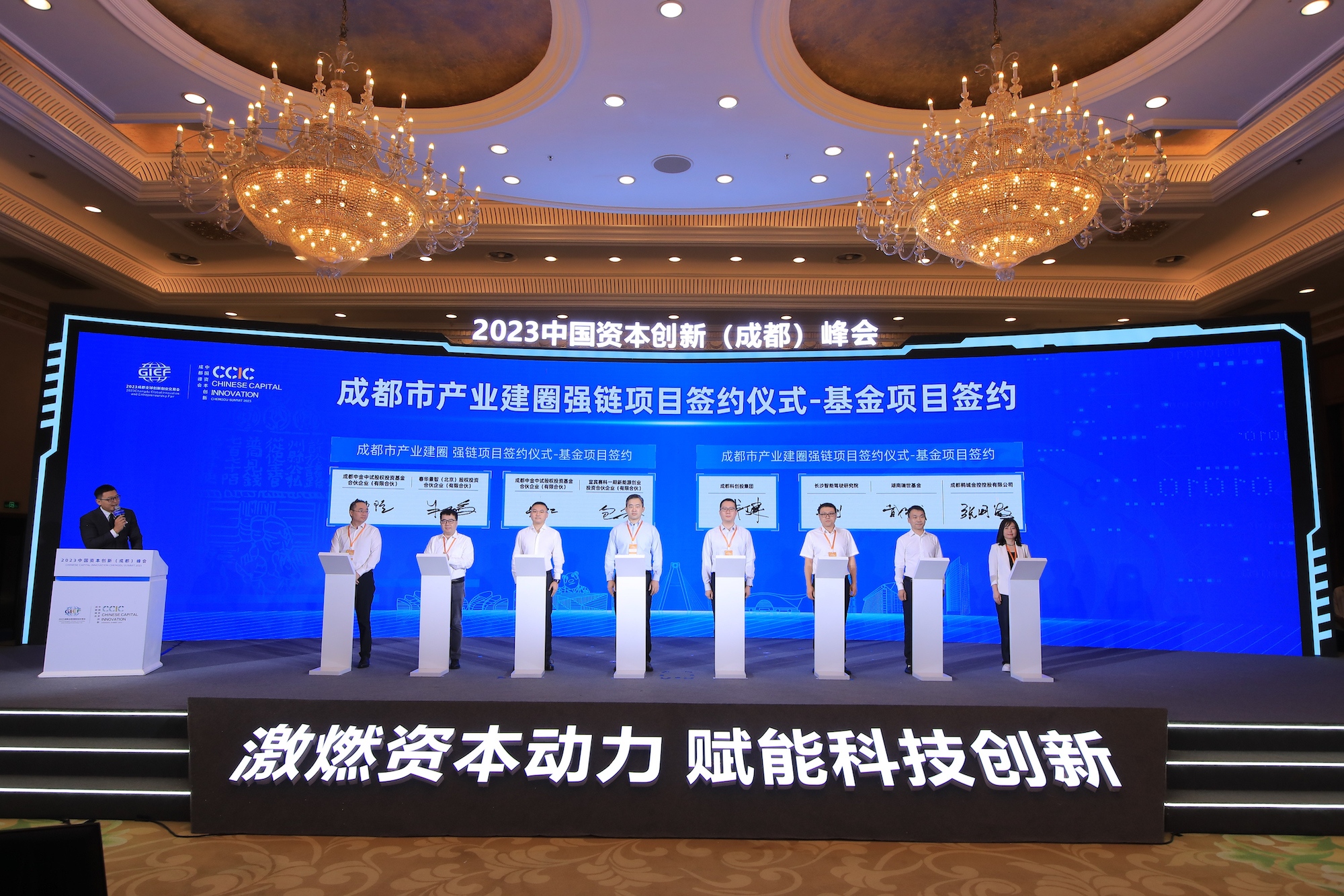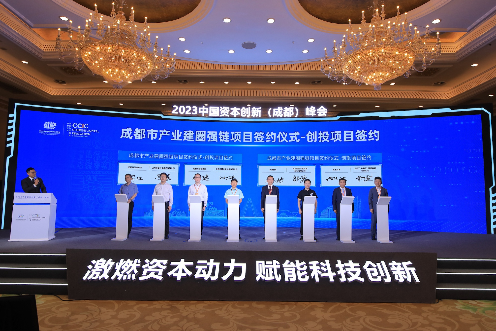 峰会现场,成都产业建圈强链重要项目举行了签约仪式,包括基金项目、创投项目和高能级项目12个。