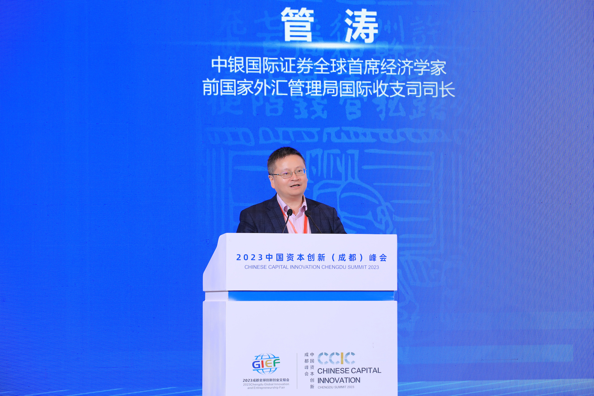 中银国际证券全球首席经济学家,前国家外汇管理局国际收支司司长管涛以《坚持创新发展 推动经济回升向好》为题发表主旨演讲。