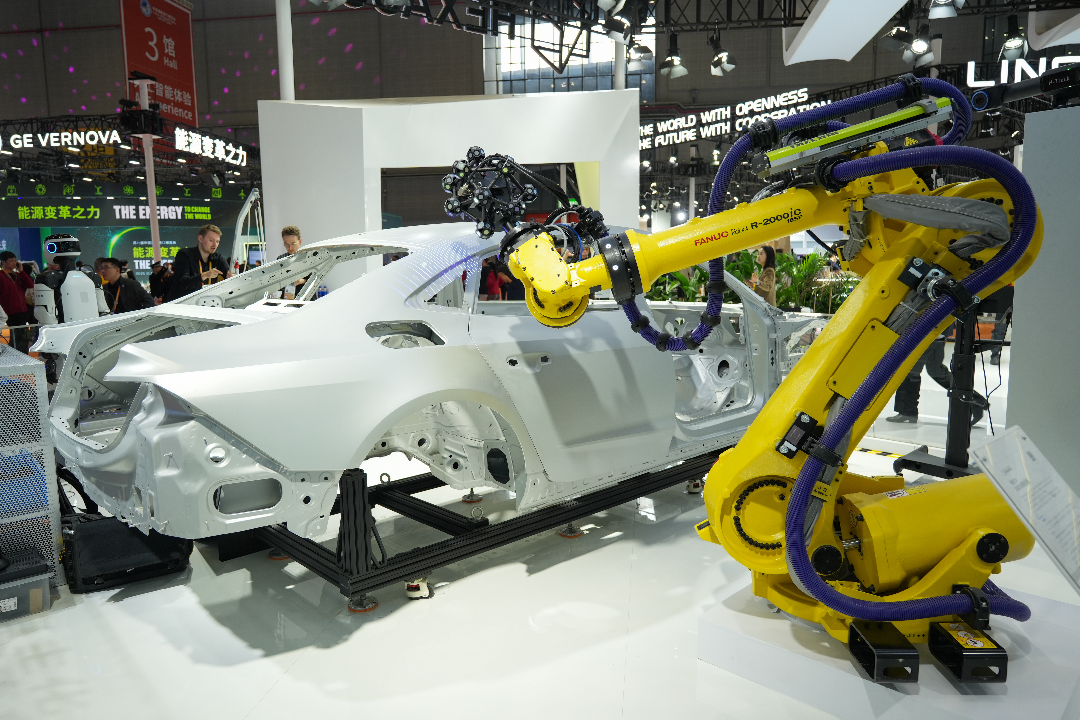 这是11月6日在第八届进博会技术装备展区拍摄的自动化测量系统。新华社记者 张子彧 摄