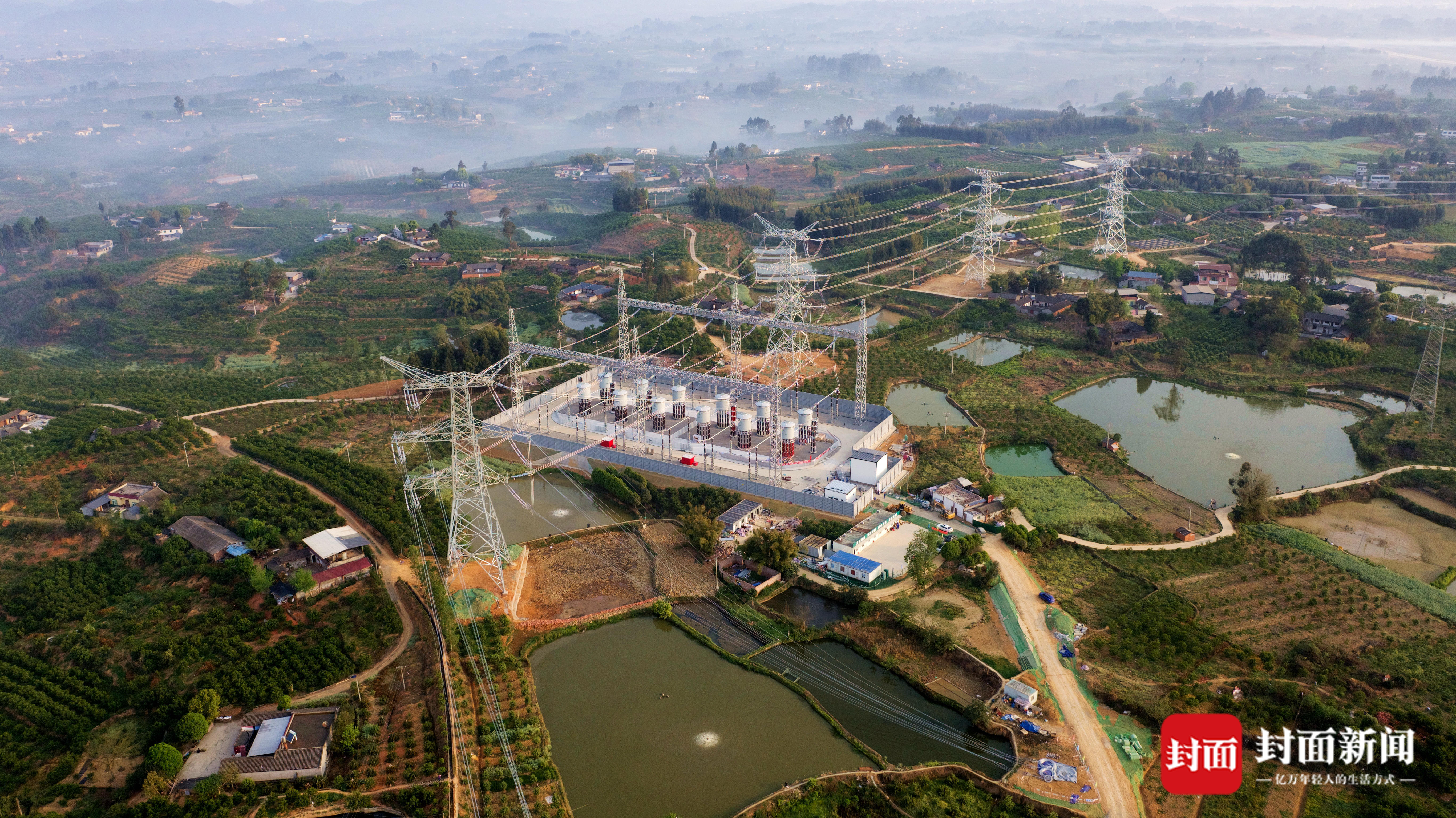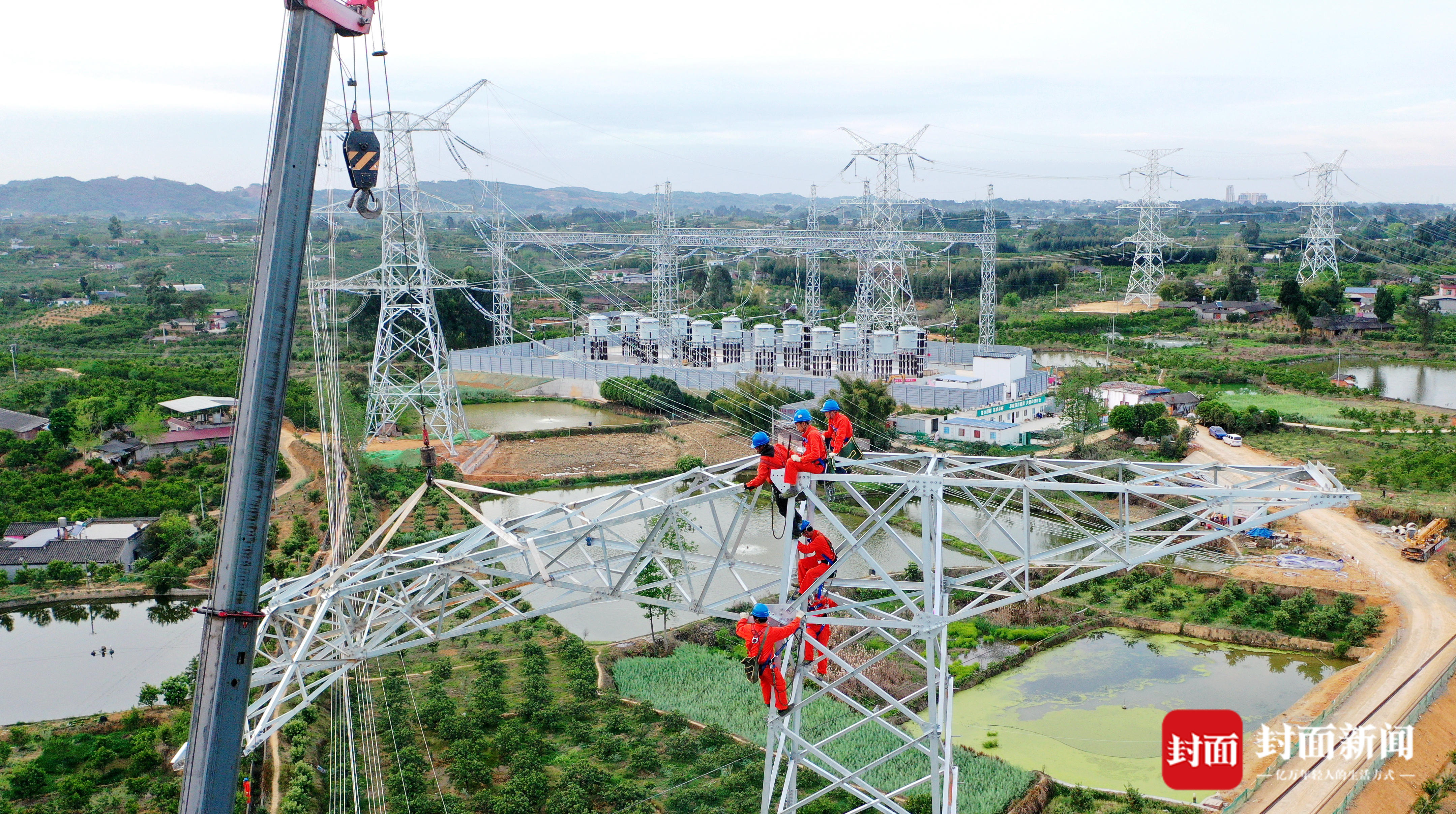 尖山-彭祖500千伏线路串抗站新建工程航拍。(谭谢阳 摄)