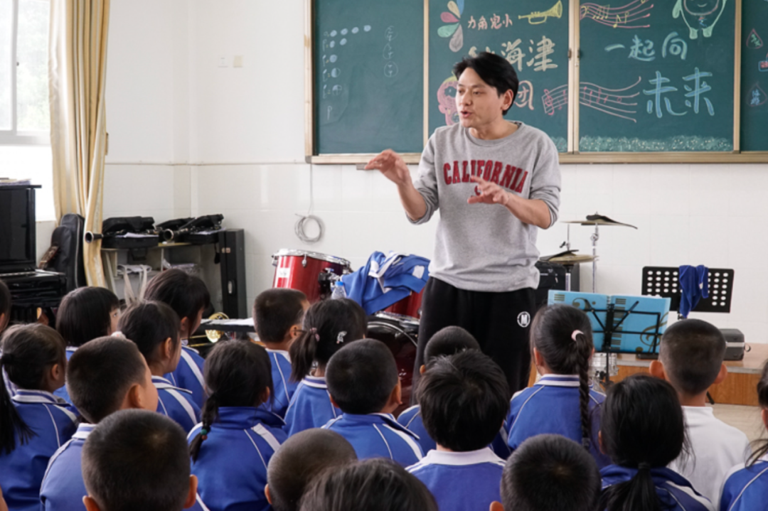 △80后支教老师给深山里的孩子上音乐课。
