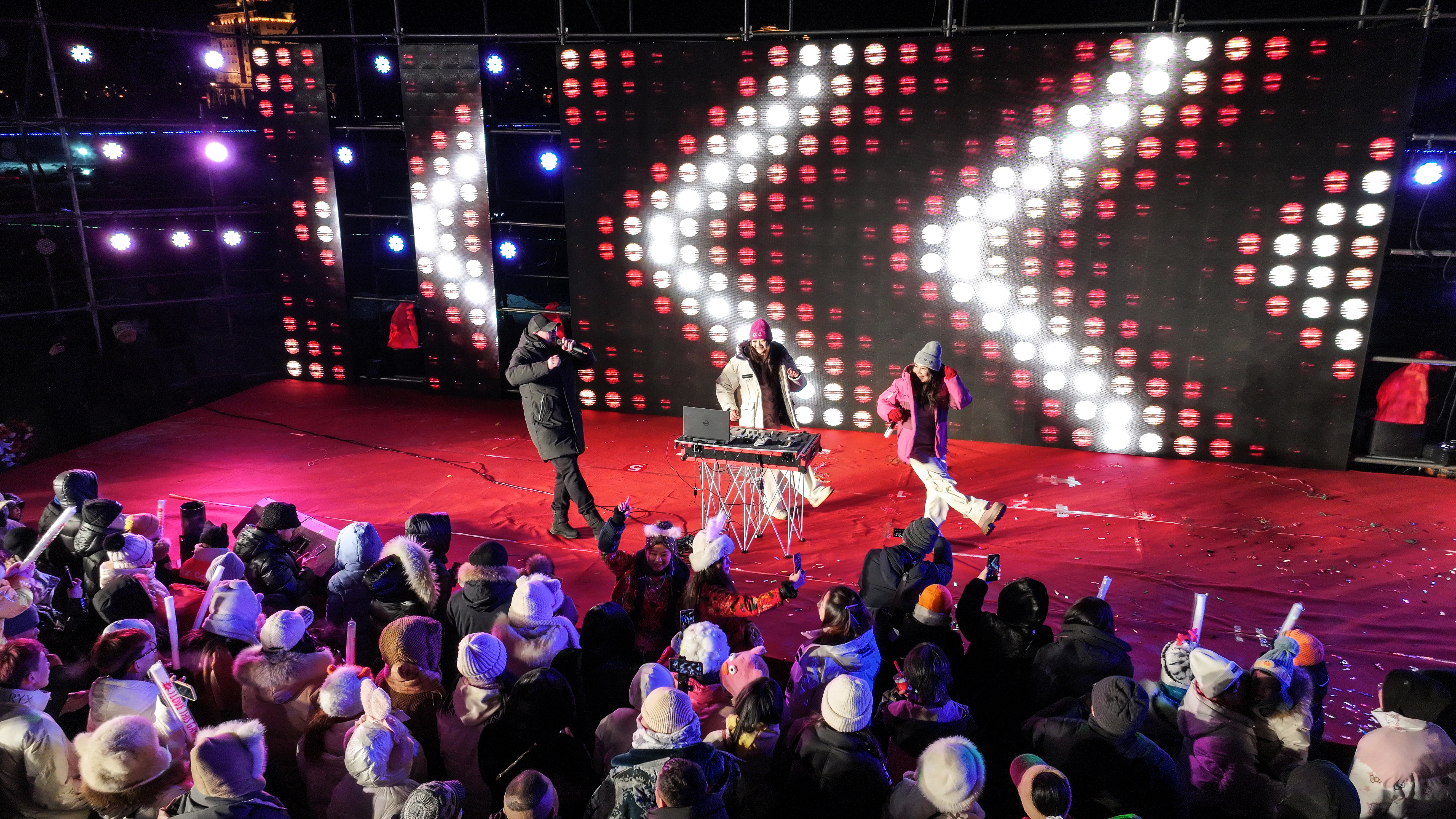 夜幕降临,伴随着热烈的鼓点,一场别开生面的室外派对精彩上演。台上,中俄两国表演者轮番献艺。台下,观众挥舞着荧光棒,跟随节奏起舞,绚丽的烟花表演将气氛推至高潮,现场化作一片欢乐的海洋。