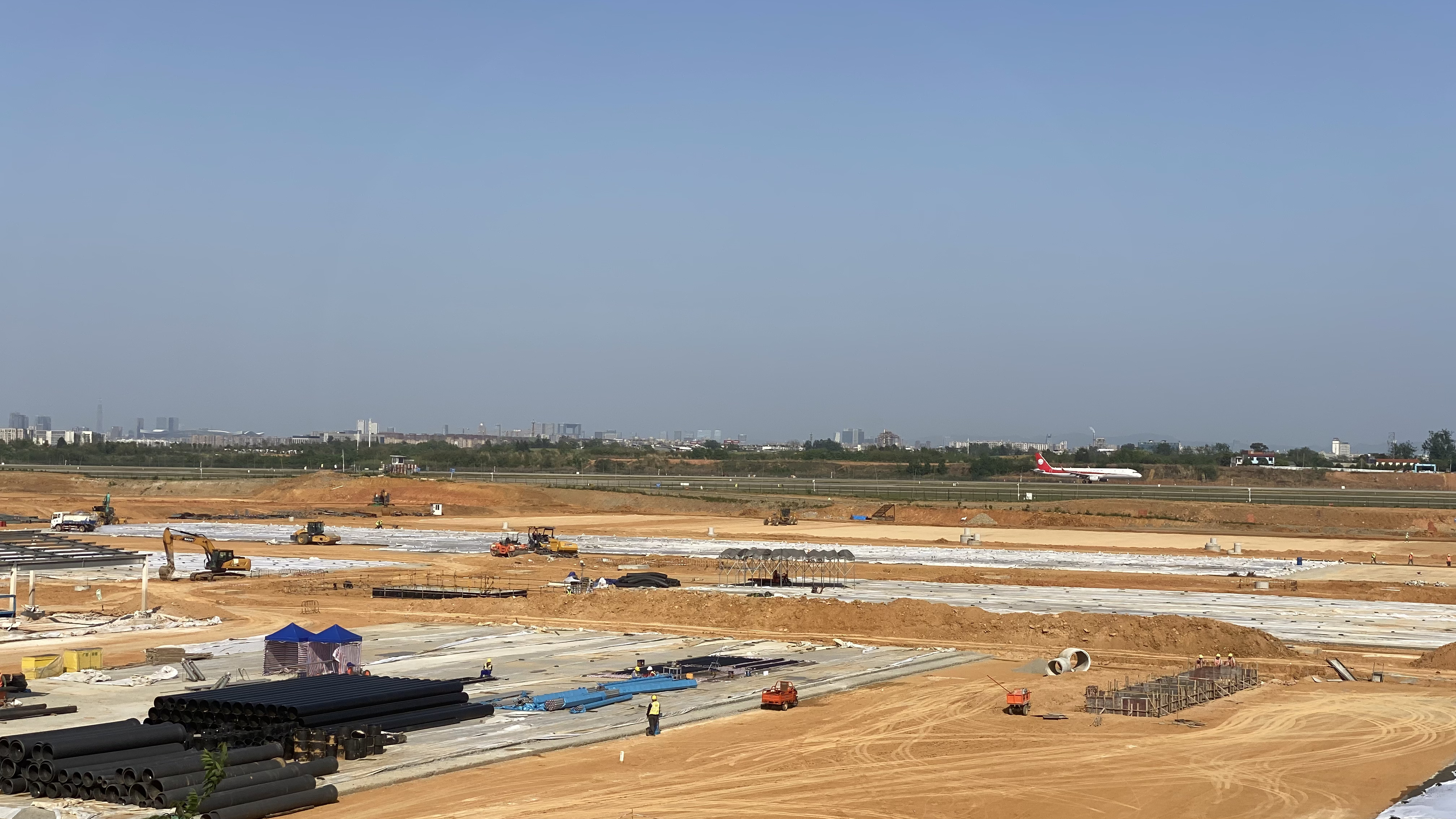 此外,成都空港兴城集团相关负责人介绍了最新的建设进展:土石方挖填工作已完成90%,道面灰土层完成70%,水稳层已完成20%;建筑主体结构施工已完成95%,已启动建筑装饰及幕墙施工。