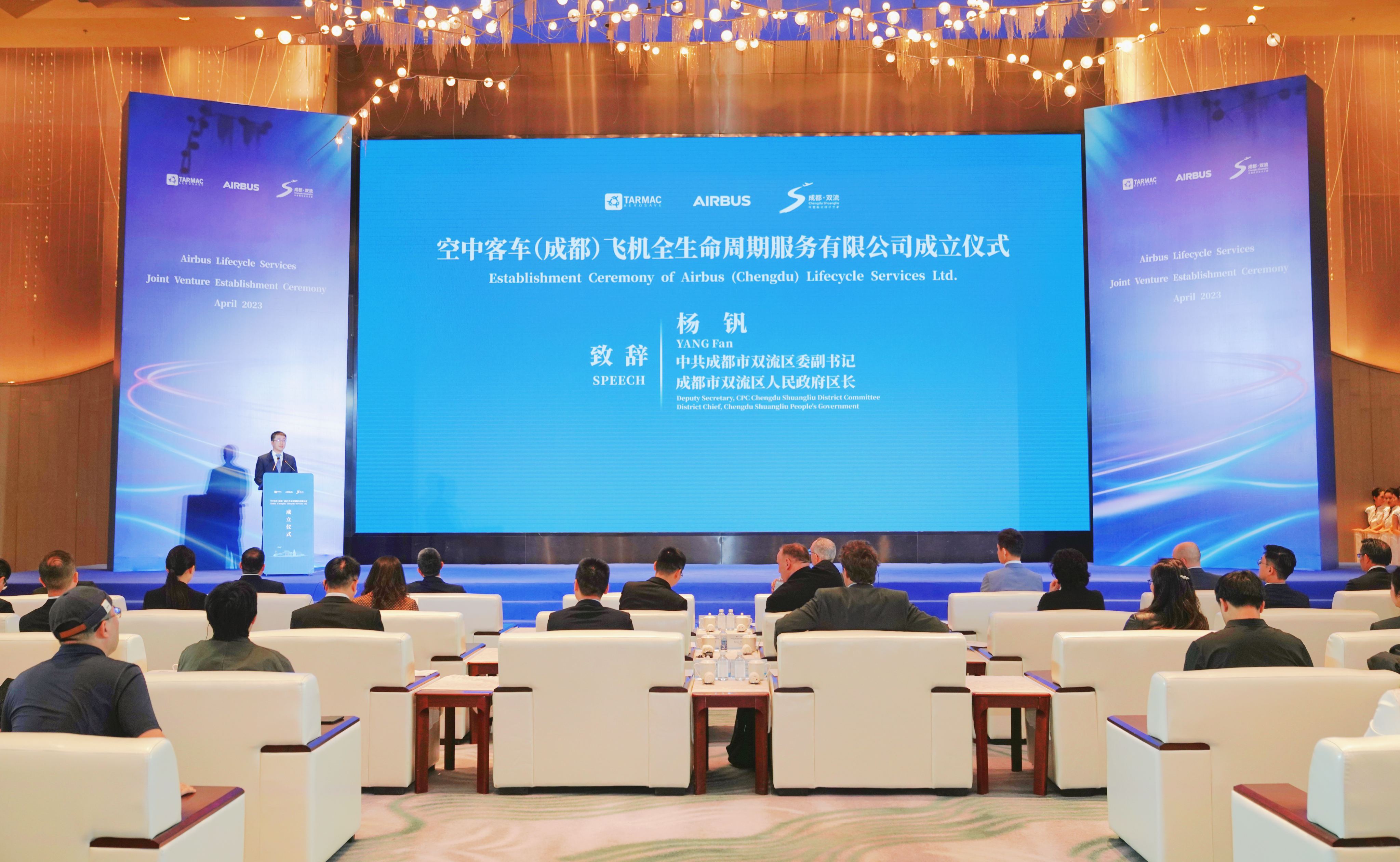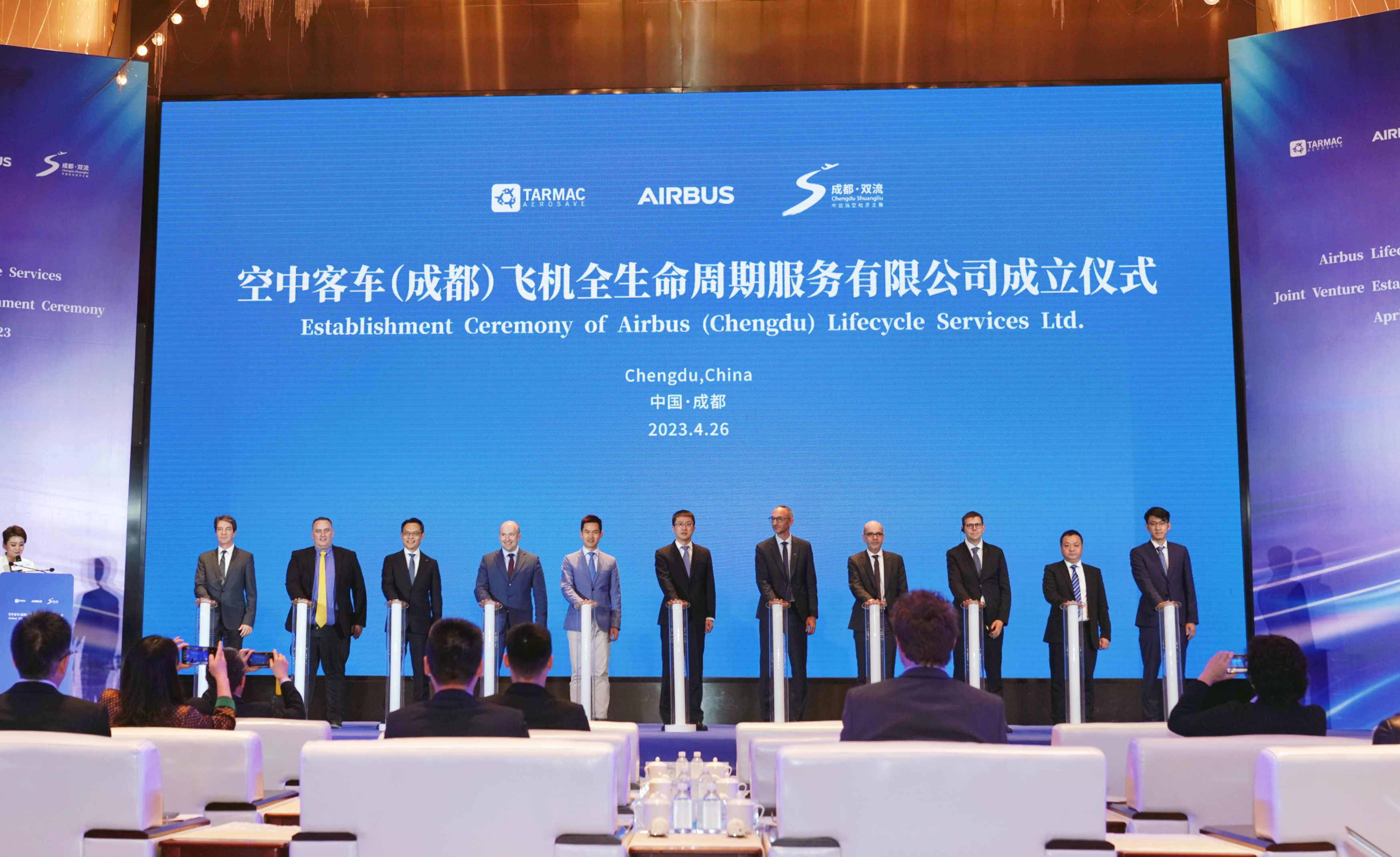 4月26日,作为四川省级重点产业项目,空中客车(成都)飞机全生命周期服务有限公司成立仪式在成都举行。