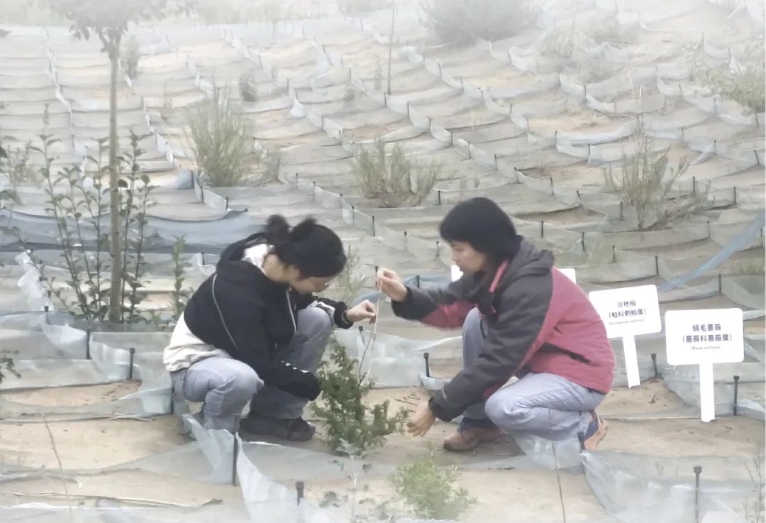 山南市扎囊县桑耶镇的沙化土地生态治理综合示范区内,边长1米的沙地试验样方整齐排列,种植着散生栒子、巴东醉鱼草、树锦鸡儿……这些样方构成了一个个“微生境”,成都山地所研究员周萍正带着学生们蹲在地上,仔细查看样方内植物的生长情况。