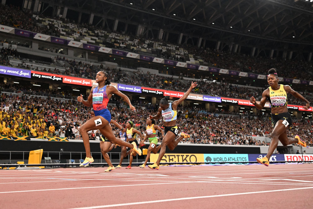 其他三个接力项目中,美国队在女子4x400米中以3分16秒61创赛会纪录夺冠,在男子4x100米中跑出37秒29的今年世界最好成绩摘金,并在女子4x100米接力中以41秒75登顶。女子4x100米接力队中的杰弗逊-伍登也就此成为了本届唯一的“三冠王”,她此前已在女子100米和200米中加冕。