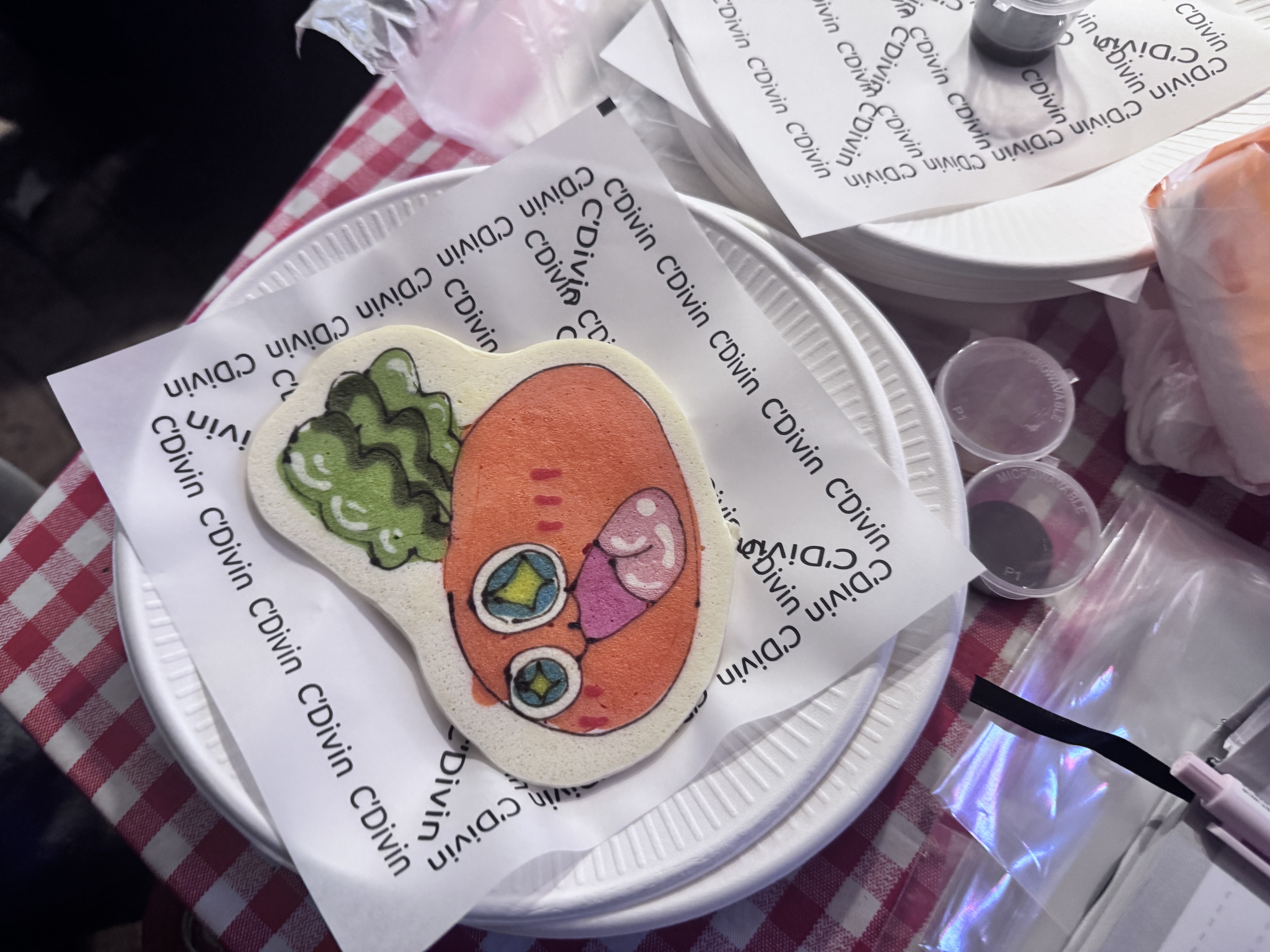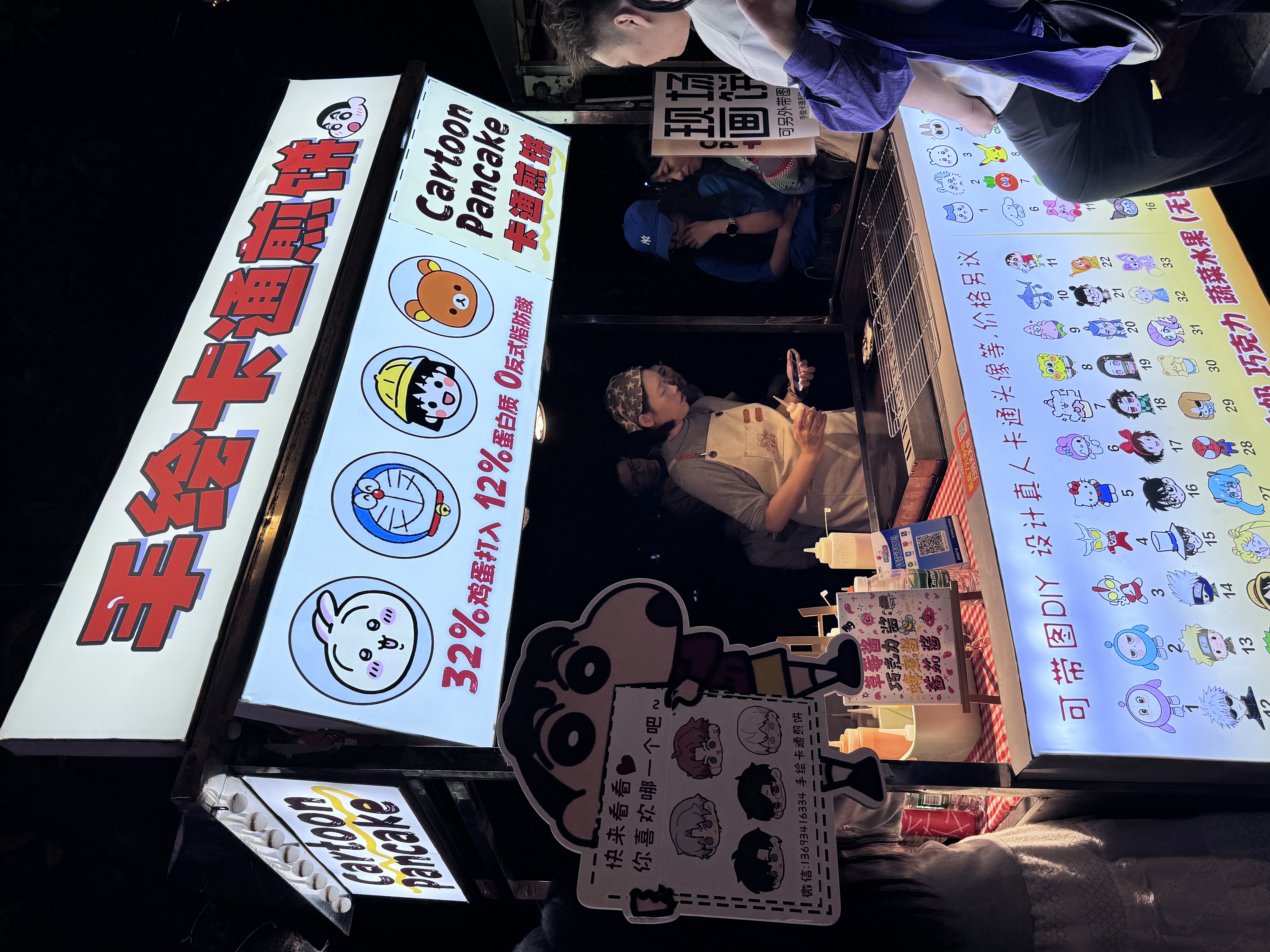 95后的曾女士便是摊位老板,她曾是一名艺术生,毕业后在一家艺术机构担任美术老师。由于生活压力较大,两个月前她和丈夫决定创业,走上街头摆摊,将艺术与美食结合,制作出充满创意的卡通饼。