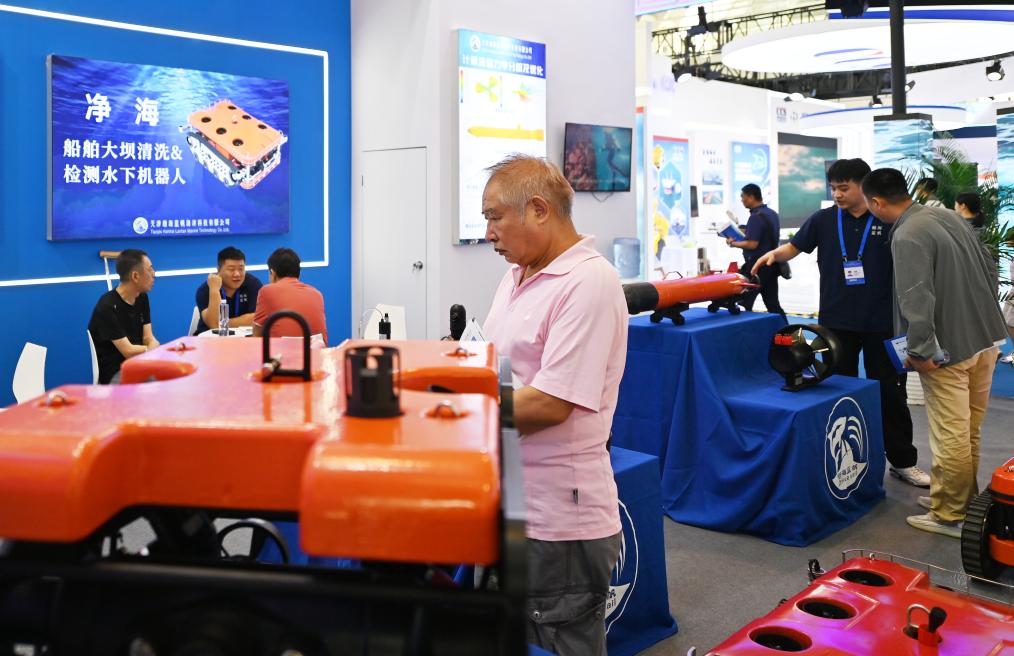 7月11日,与会者在2024天津国际航运产业博览会上了解水下机器人。新华社记者 李然 摄