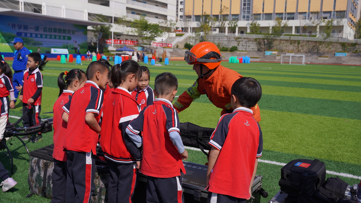 为创新森林防火宣传教育形式,提高孩子们的森林防火意识,3月1日,攀枝花森林消防支队的消防救援人员以特别的方式,为攀枝花市外国语学校钒钛高新区校区的小朋友们带去了“消防课”,让他们近距离接触森林防火知识。