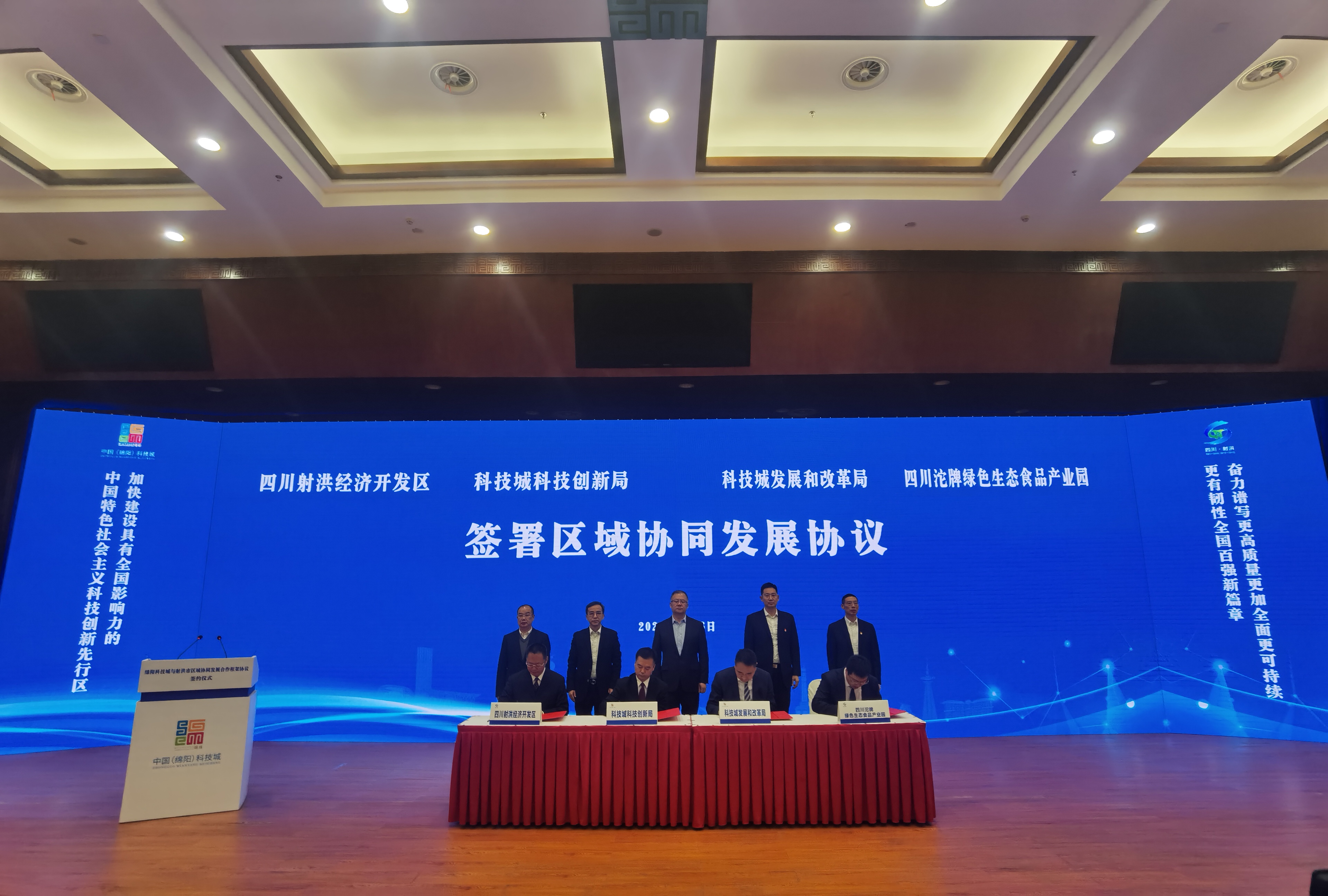 3月16日,绵阳科技城与射洪市区域协同发展合作框架协议签约仪式举行。四川射洪经开区、四川沱牌绿色生态食品产业园分别与科技城科技创新局、科技城发展和改革局签订区域协同发展合作框架协议。