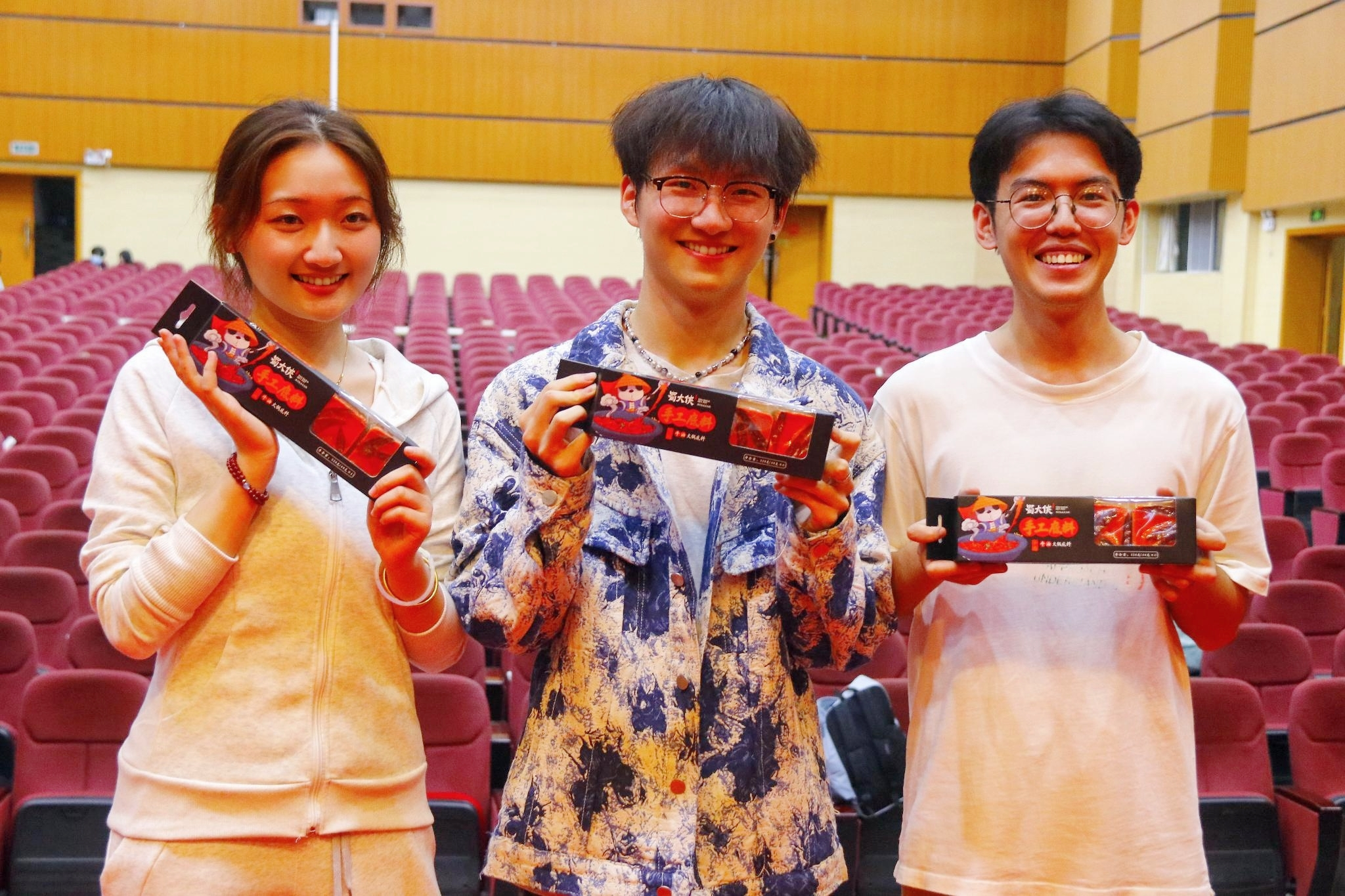 (同学领到封面新闻青蕉社区提供的“热辣开学礼”)
