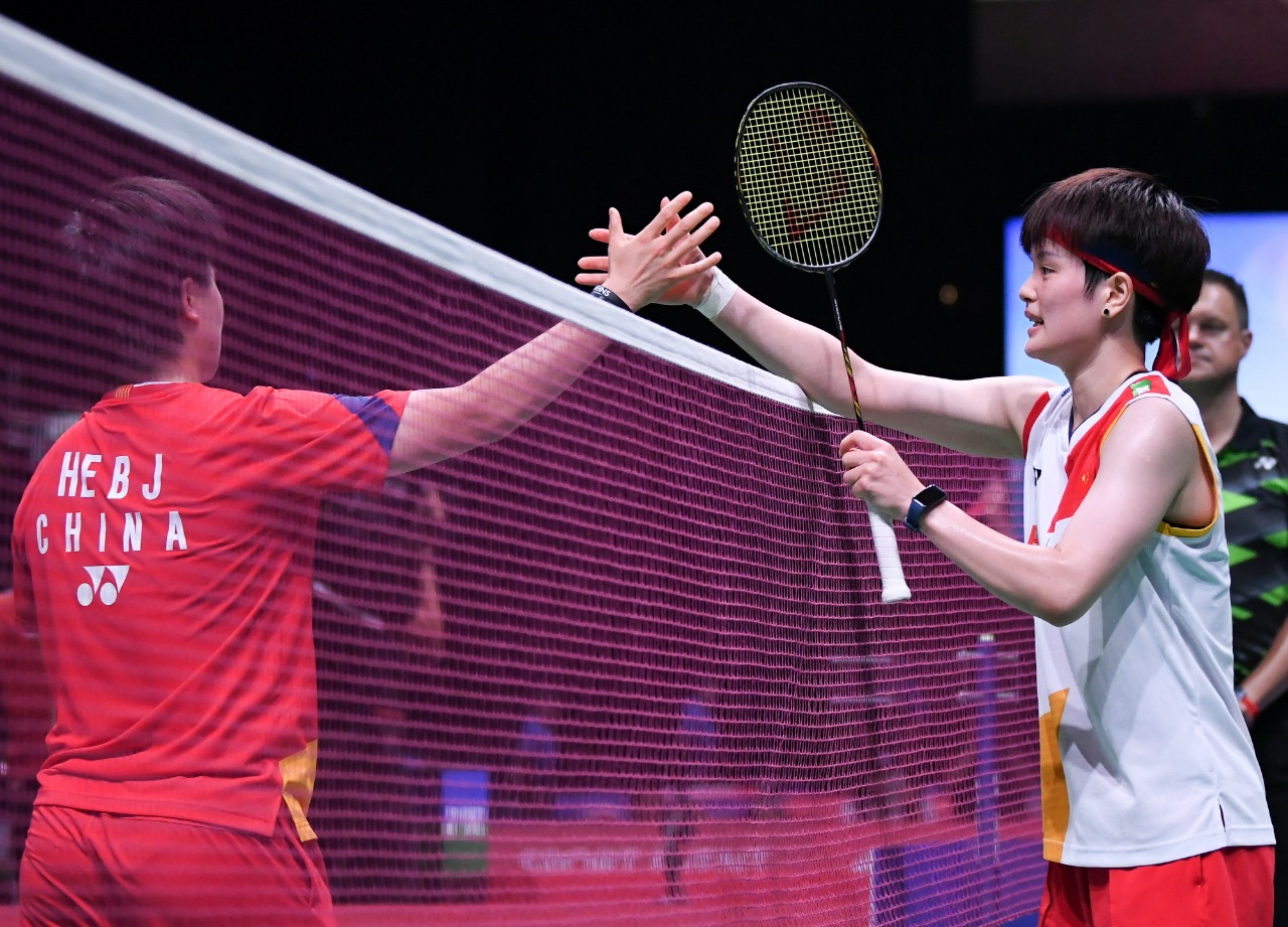 女单方面,中国队有四名选手进入八分之一决赛。王祉怡与队友何冰娇交手,在先丢一局的情况下,王祉怡最终以13:21、21:7、21:14获胜。四分之一决赛中,王祉怡将对阵另一位队友、东京奥运会冠军陈雨菲,后者当天以21:12、21:13击败丹麦选手布利克费尔特。韩悦则不敌印度尼西亚选手玛丽斯卡,无缘八强。