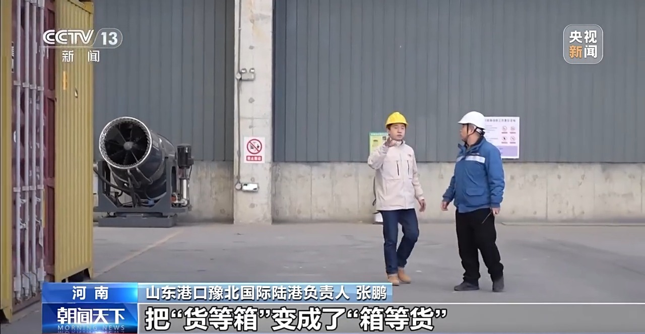 山东港口豫北国际陆港负责人 张鹏:利用我们与港口连接的数字平台,我们精准匹配当地企业的用箱需求,把一些空箱子从山东港口直接调过来,把“货等箱”变成了“箱等货”。