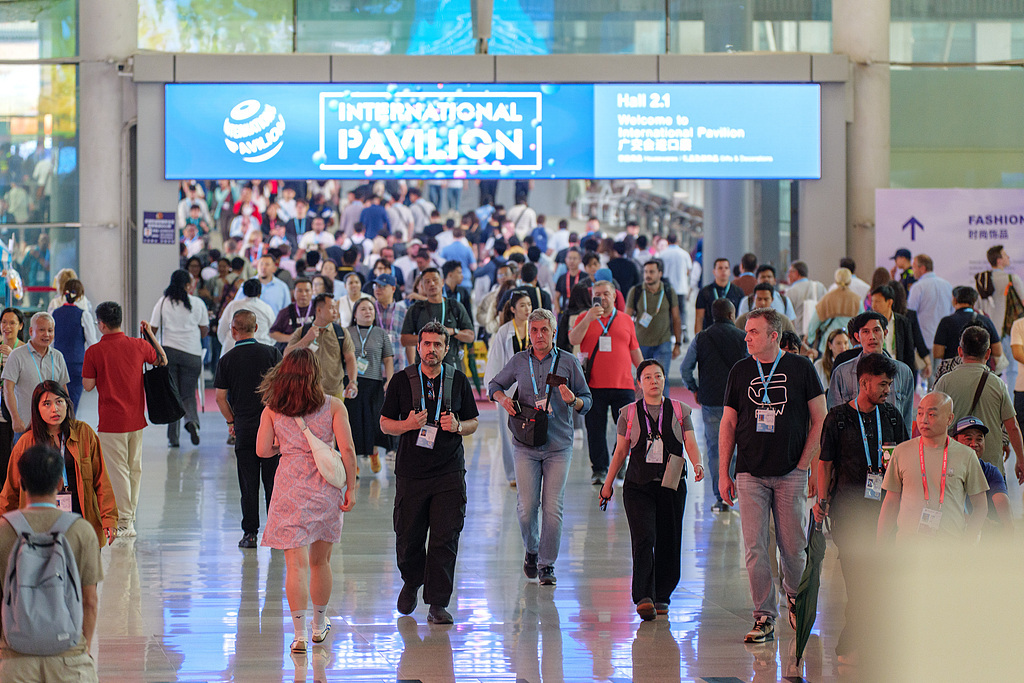 2026年4月23日,第139届广交会二期开幕,图为中外客商行走在展馆内。视觉中国 图