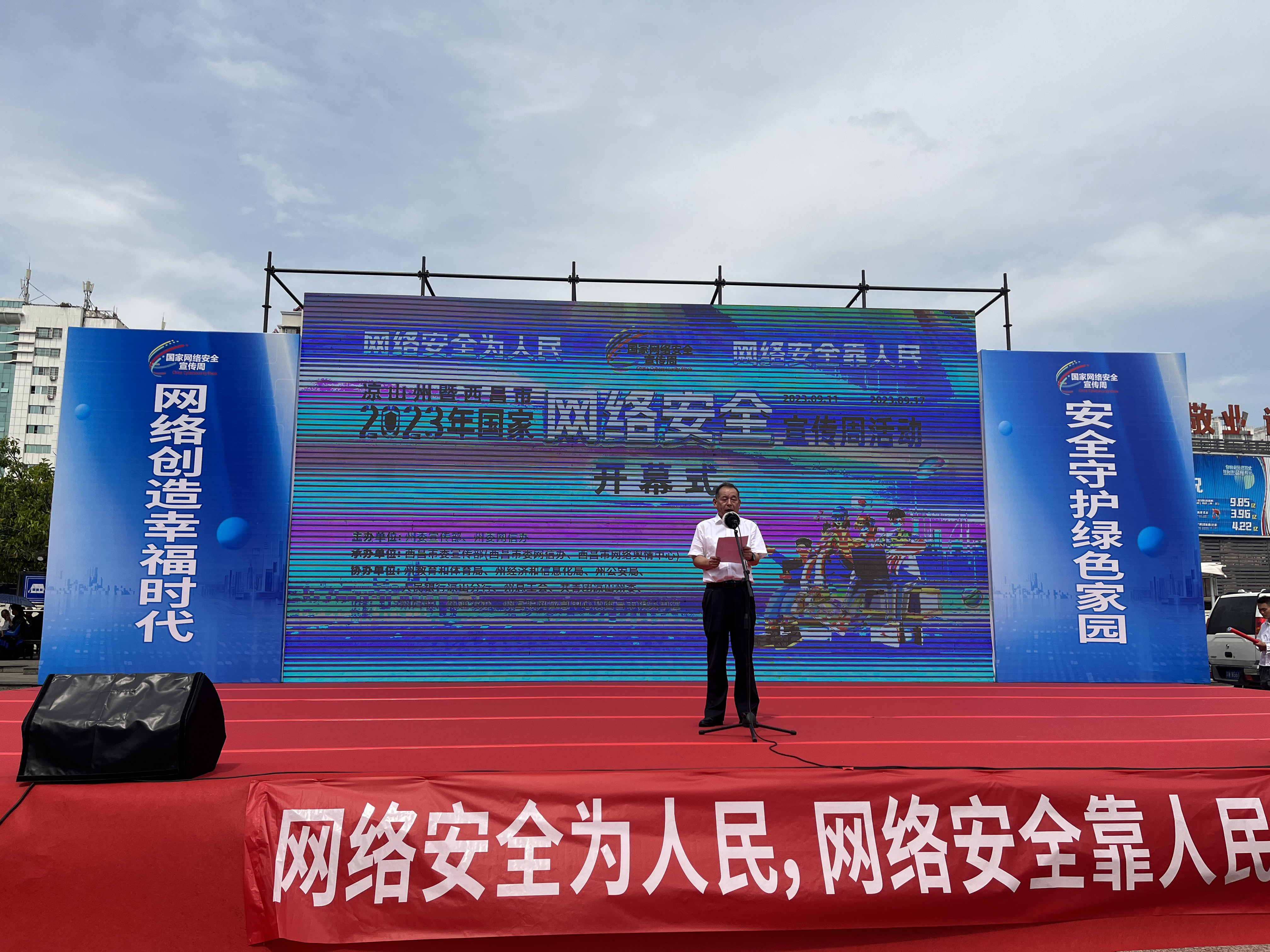 9月11日上午,四川凉山州暨西昌市2023年国家网络安全宣传周活动开幕式在西昌月城广场举行,凉山州委常委、宣传部部长黄玉超宣布网络安全宣传周活动启动。
