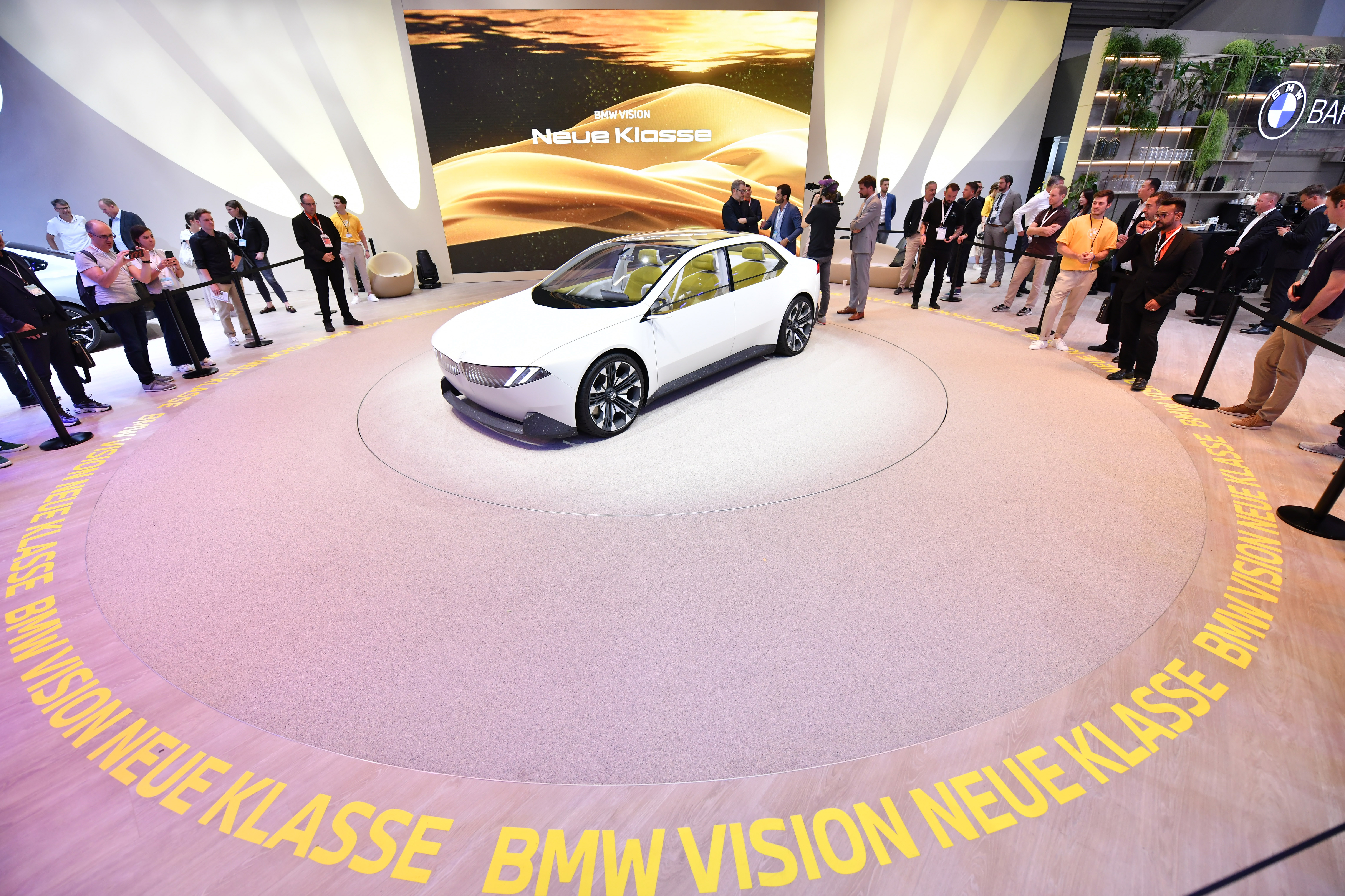 2023年德国国际汽车及智慧出行博览会9月5日在德国慕尼黑正式开幕,人们在宝马展区参观。(新华社记者任鹏飞摄)