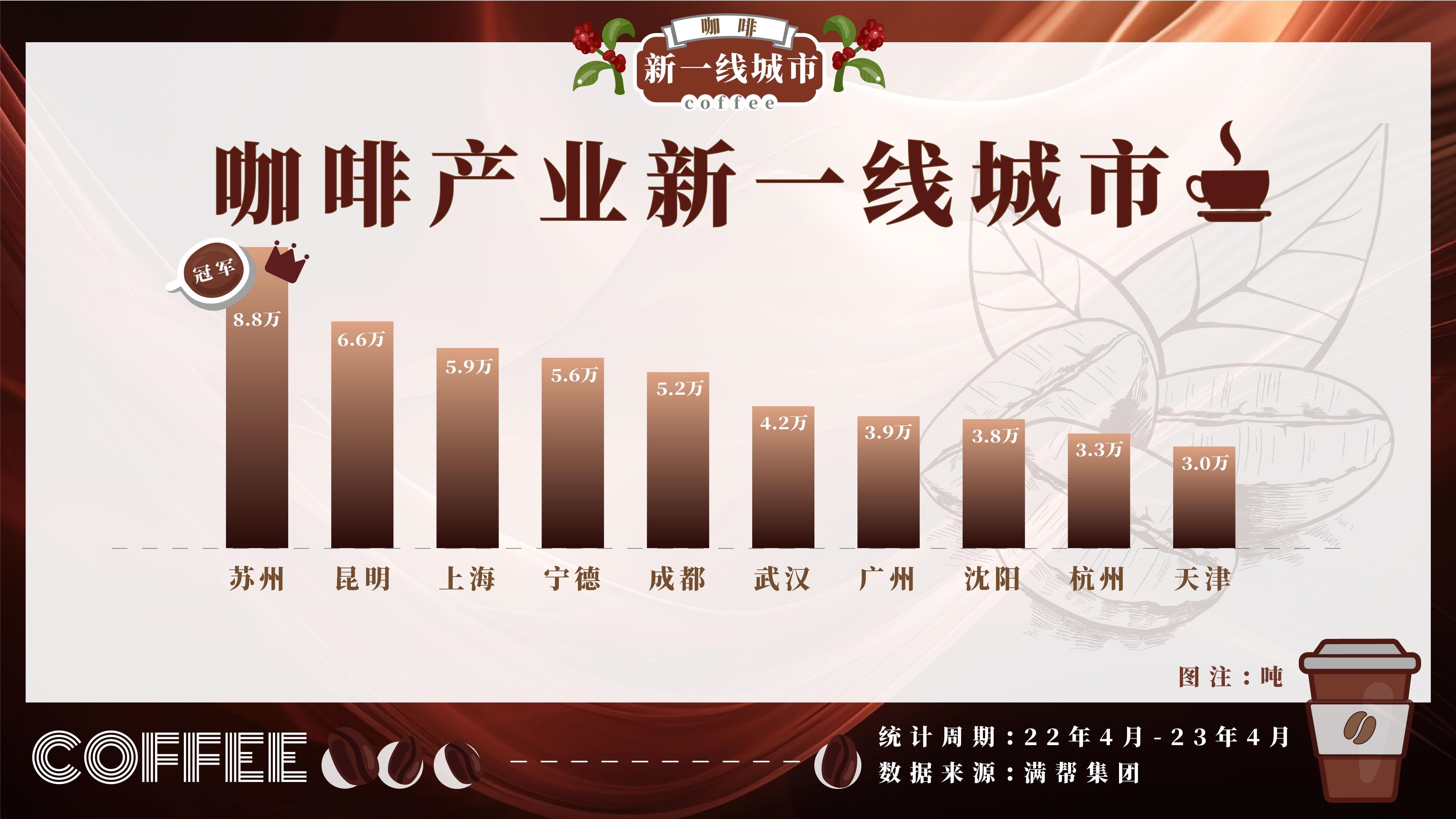 在经济学领域,“咖啡指数”已成为反映一个地区经济活力的指标。从一定程度上讲,“咖啡指数”也是都市繁华度的象征。数据显示,苏州在过去一年中收到近9万吨的咖啡,成为排行榜“榜一大哥”,以2万多吨的优势领先于亚军昆明。苏州这一年收到的咖啡甚至相当于“咖啡之城”上海与“新晋顶流”城市天津的总和。