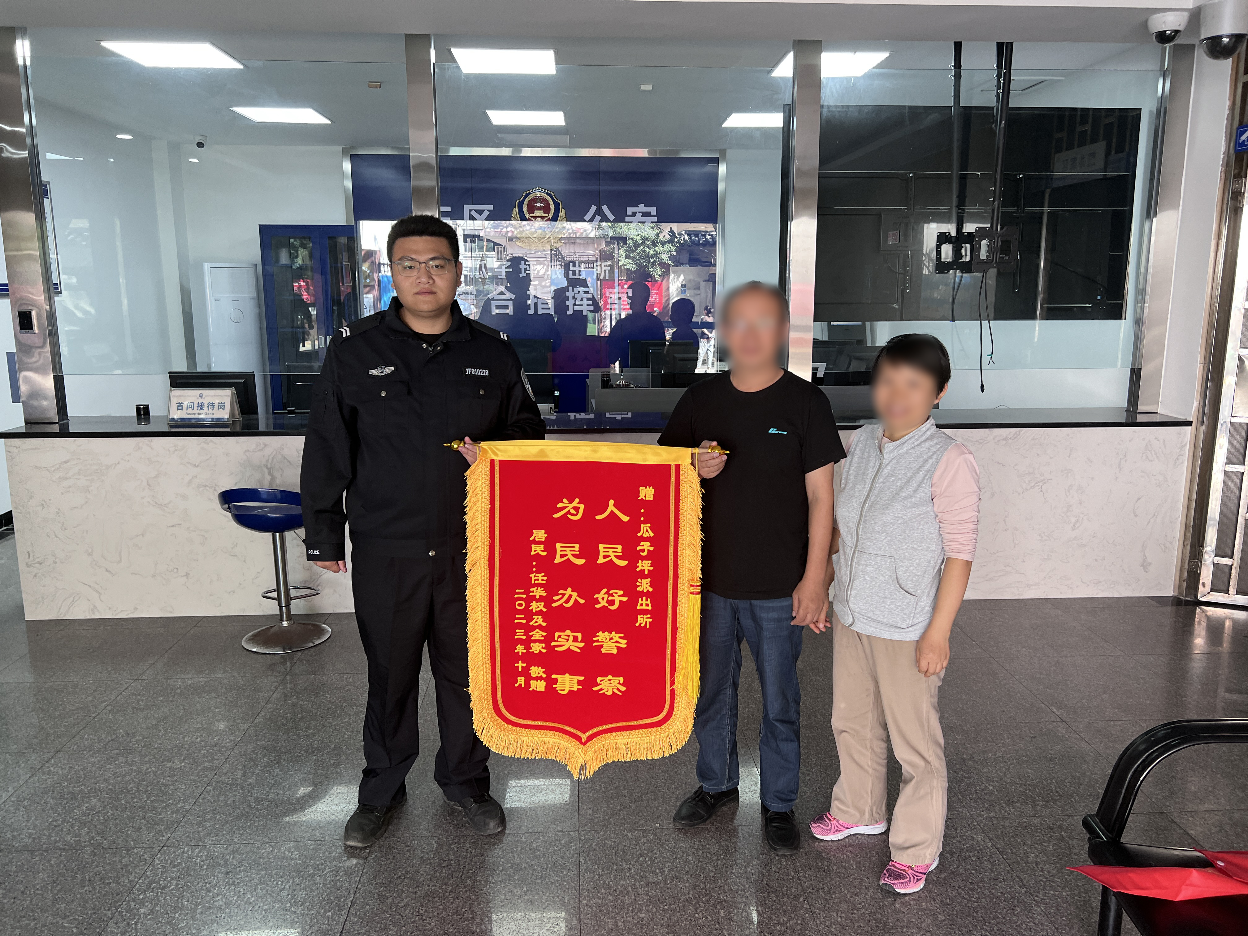 老人家属为民警送来锦旗