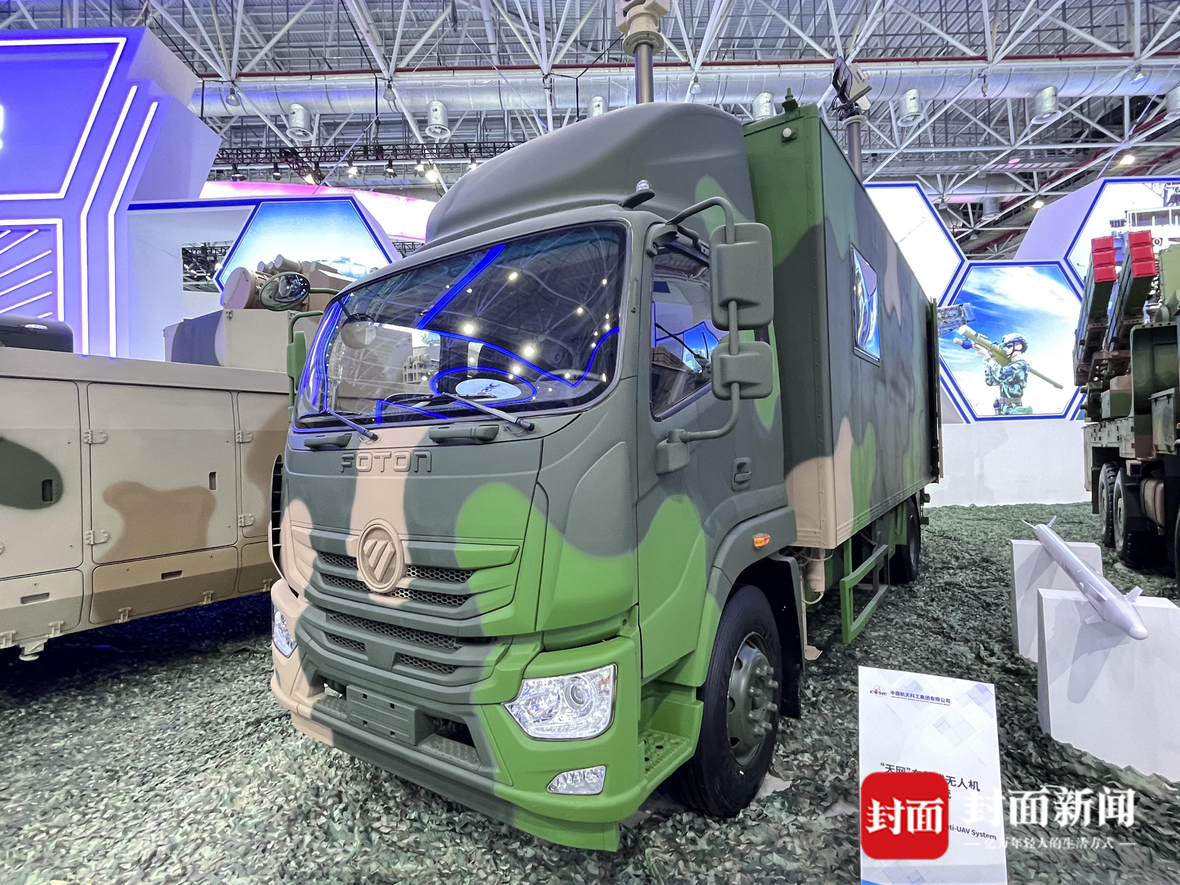 封面新闻记者注意到,在“天网”车载式无人机防控系统中,车辆尾部设有一个可放置大型无人机的平台。